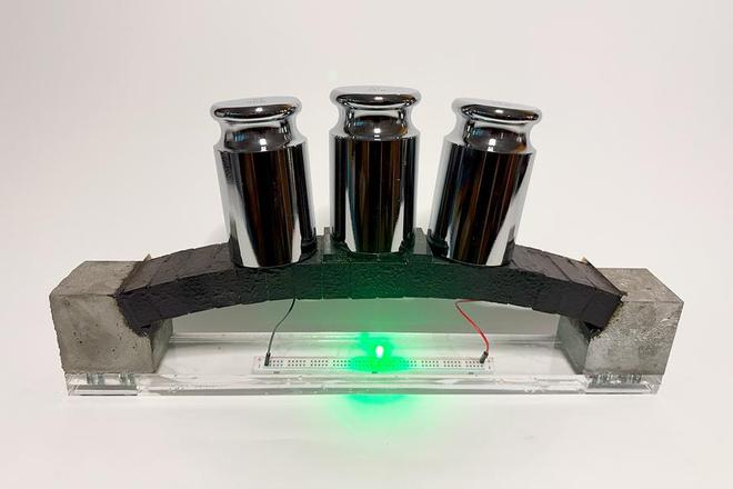 研究团队还制作了一座微型ec³拱门,在9伏电压下既能承重,又能点亮LED灯。有趣的是,当拱门负载增加时,灯光会出现闪烁。这提示了应力与电流分布间的潜在关联,意味着未来或许能利用这种“波动”实现结构自监测——当遭遇风荷载等外力时,建筑本身能通过电信号反馈出健康状况。