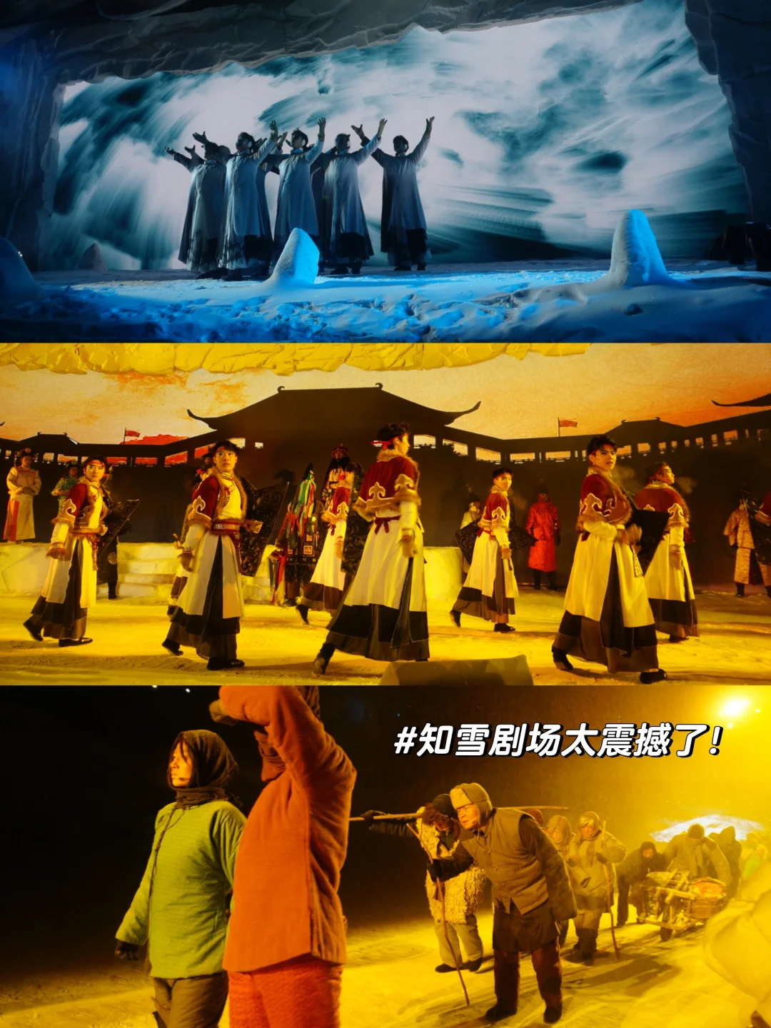 每天18点和19点两场《落雪成诗》剧情演绎+光影秀+人造下雪+19点40剧场蹦迪!很震撼很嗨!