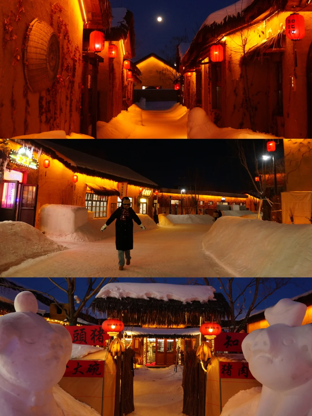 整个村落都被白雪覆盖,仿佛童话中的世界,黄土墙,辣椒串,红灯笼…尊嘟超出片!夜幕降临华灯初上更是氛围感拉满~具体可体验👇