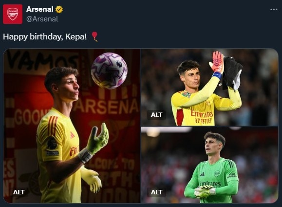 直播吧10月3日讯今天是凯帕的31岁生日,阿森纳官推发文送祝福。