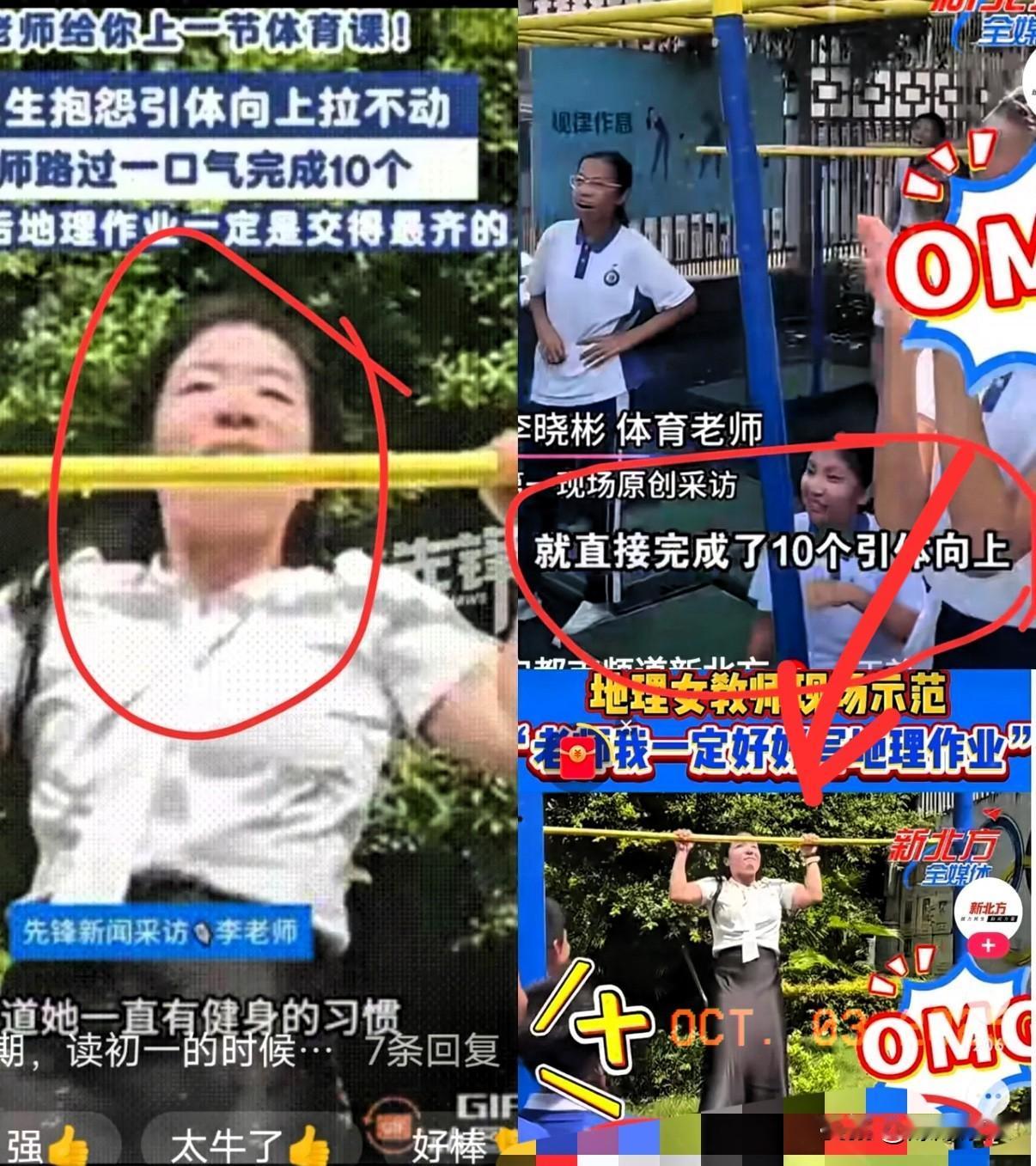 深圳老师火了! 体育课上这一幕,学生们都看呆了 体育老师教学生练引体向上,一群孩子直喊“太难了”。 谁料路过的地理女老师直接上前,伸手就抓着单杠,轻轻松松做完了10个,当场让学生们傻了眼,网友都忍不住说“人真不能貌相”。 这哪是运气啊,分明是平时坚持锻炼的结果。要知道引体向上特别考验心肺功能,还有手臂和背部的力量,不常练根本做不了几个。地理老师没说啥大道理,就用这一下示范,比讲多少话都管用。 其实教育就是这样,“身教”永远比“言传”更有说服力。你觉得,咱们身边还有没有这样藏着“绝活”的老师?