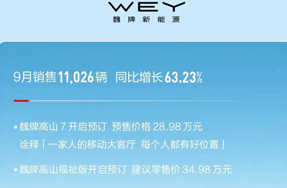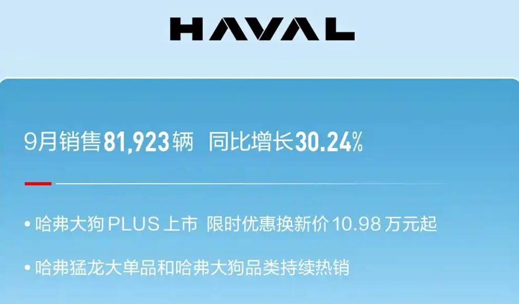 长城汽车发布9月份各个子品牌销量和总销量数据,其中全品类总计交付133639台,