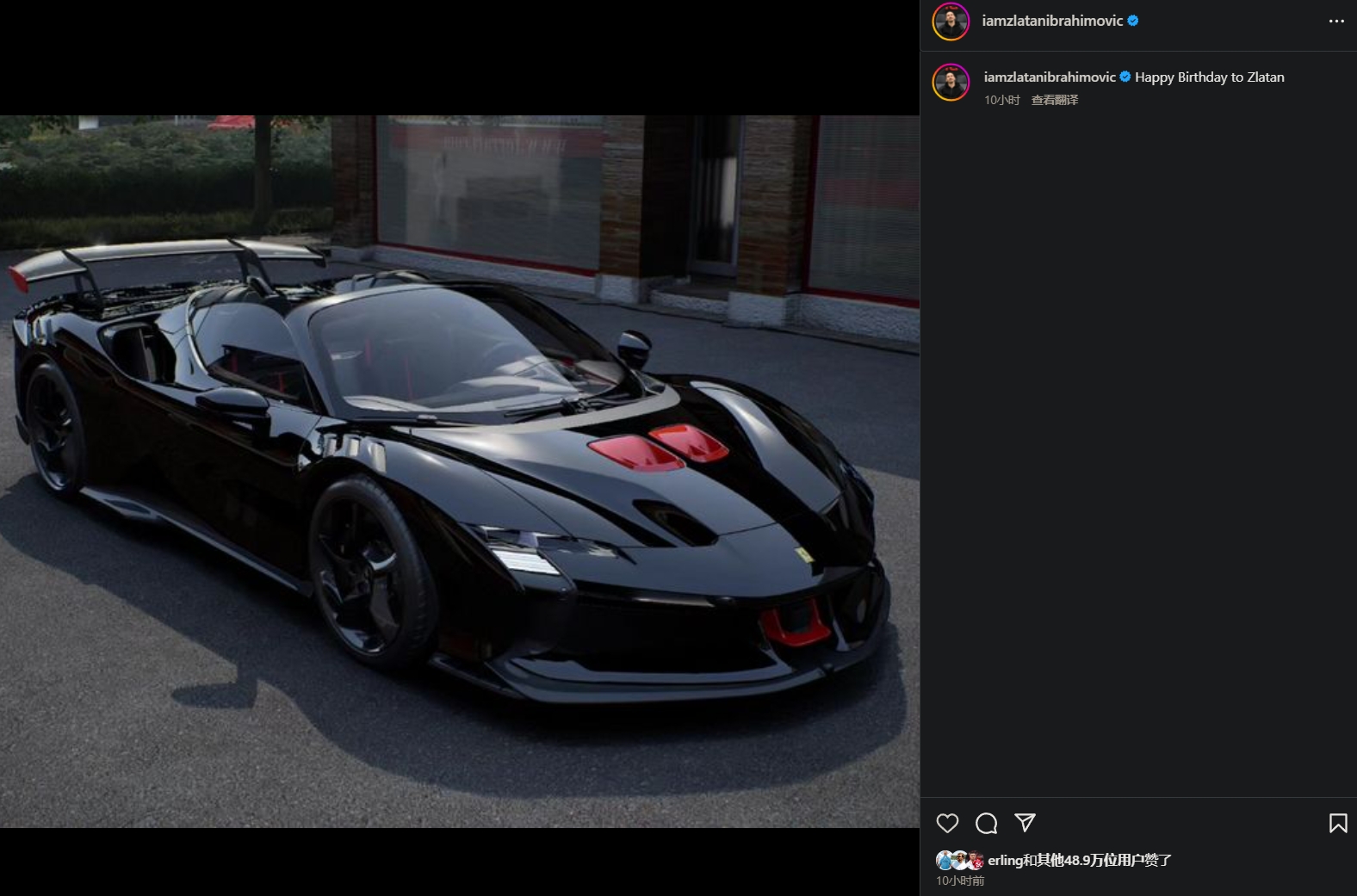 伊布已经多次在各种场合表达过自己对法拉利的喜爱:去年过生日时他就曾晒出自己的黑色法拉利SF90XXStradale跑车。