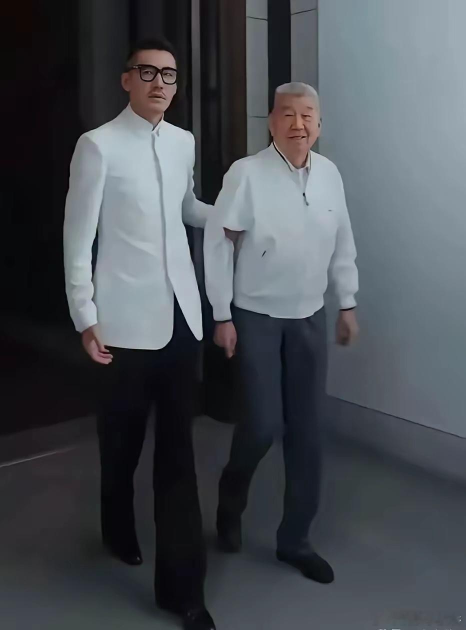 胡兵的老父亲头发花白,已是89岁高龄,却依旧身板笔直,走路稳当,眼睛炯炯有神,跟儿子胡兵穿着亲子装,一边跟儿子又说又笑一边跟路人热情打招呼,父子俩两米的大长腿太惹人注目了! ​​​