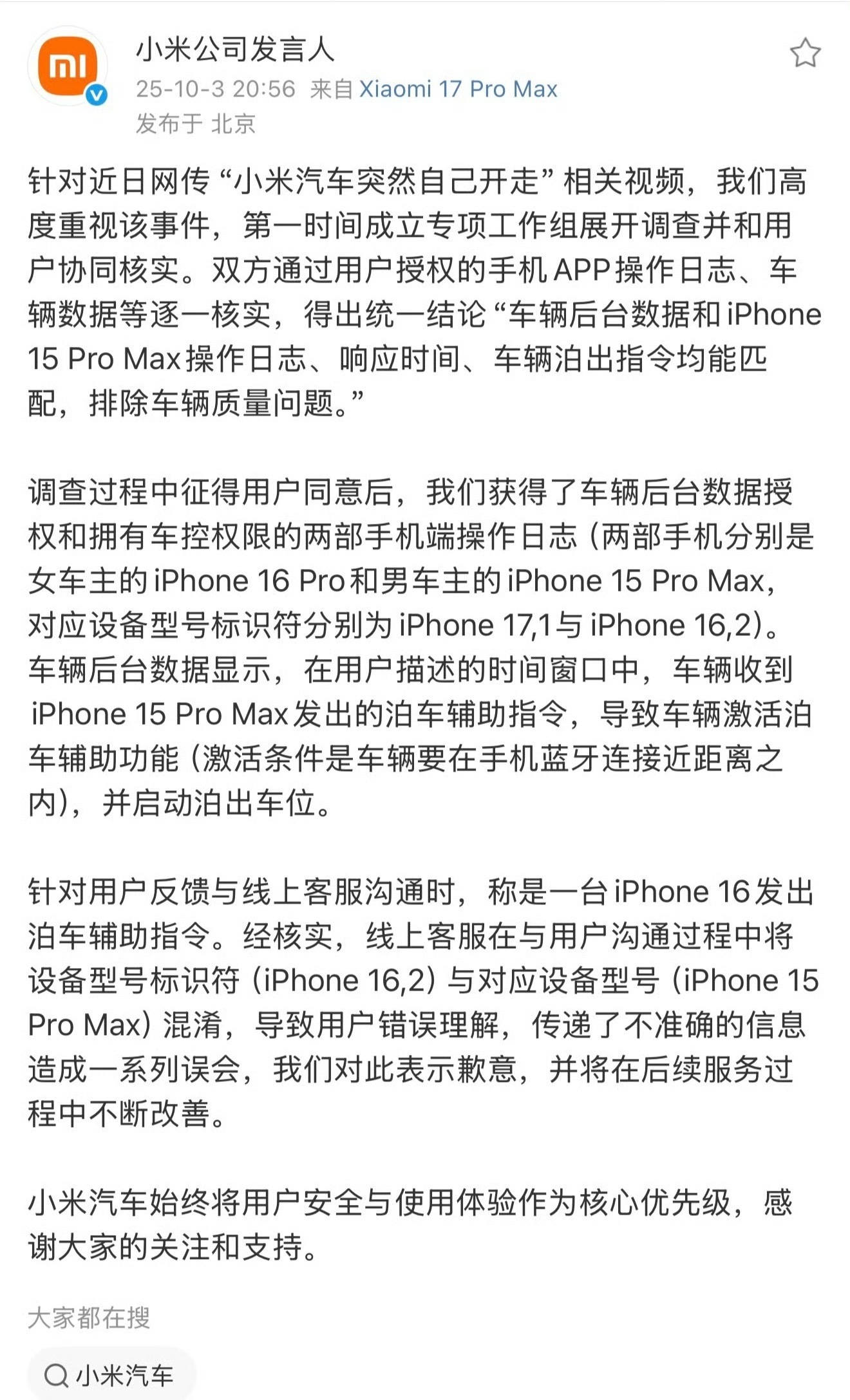 小米公司发言人回应,现在真相大白了,跟小米啥关系没有,就是用户误触了…