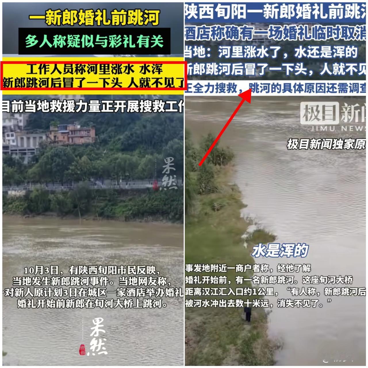 红帖摆着,亲友等着,陕西旬阳的酒店早把喜糖备好。 可10月3日上午,出现了 旬河大桥上那纵身一跳,把所有热闹全浇灭了! 要办婚礼的新郎扎进浑水里,至今没找到,只留下取消的婚宴和乱作一团的亲人。 网上都在说,悲剧跟彩礼脱不了干系。 新郎早给了20万,接亲时新娘突然要2万“下车费”,拿不出就不下车。 这哪是要“礼”,分明是把婚姻当成了讨价还价的生意。 彩礼本是份心意,现在却成了压垮人的山。 多少家庭为这掏空三代积蓄,甚至借债度日,7年都还不清。 这根本不是婚俗,是把感情明码标价,毁了婚姻该有的样子。 官方还在调查原因,但这事早戳中了年轻人的痛处。 移风易俗从来不是空话,得真能帮大家卸下这份重担才行。 你觉得该怎么让彩礼回归本来的意义?