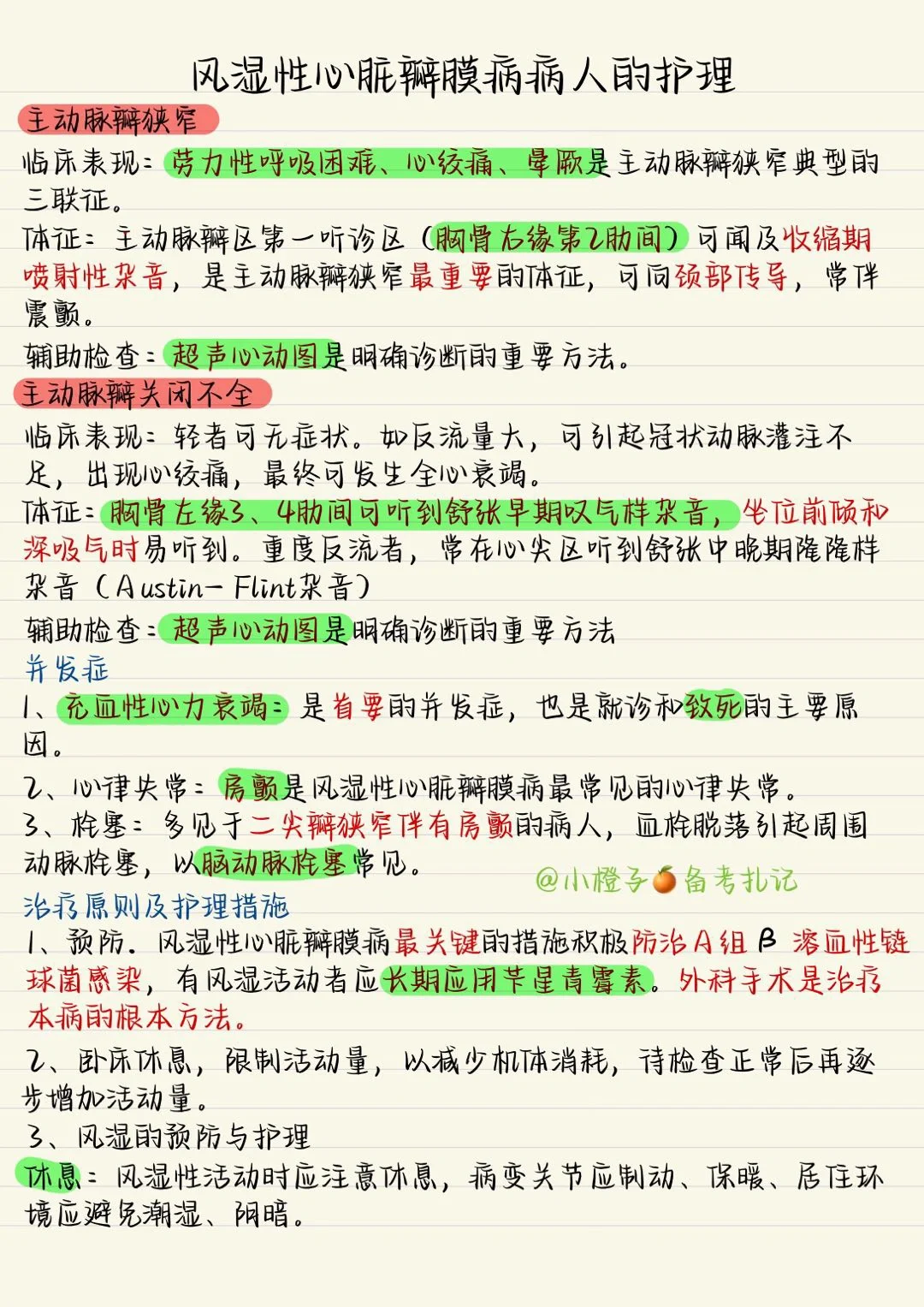 📖护师笔记|内科护理学|心脏瓣膜病2⃣️