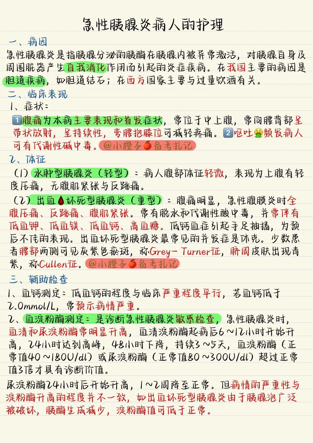 🌟今日笔记分享急性胰腺炎病人的护理🙋