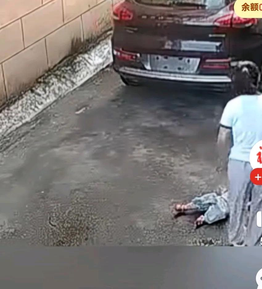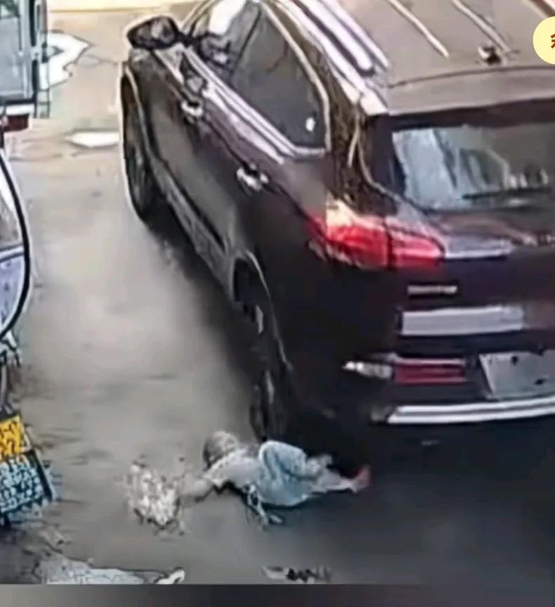 男子开车转弯没看到地上坐着的小孩,压过去感觉不对, 赶紧停车下来查看, 幸亏没有