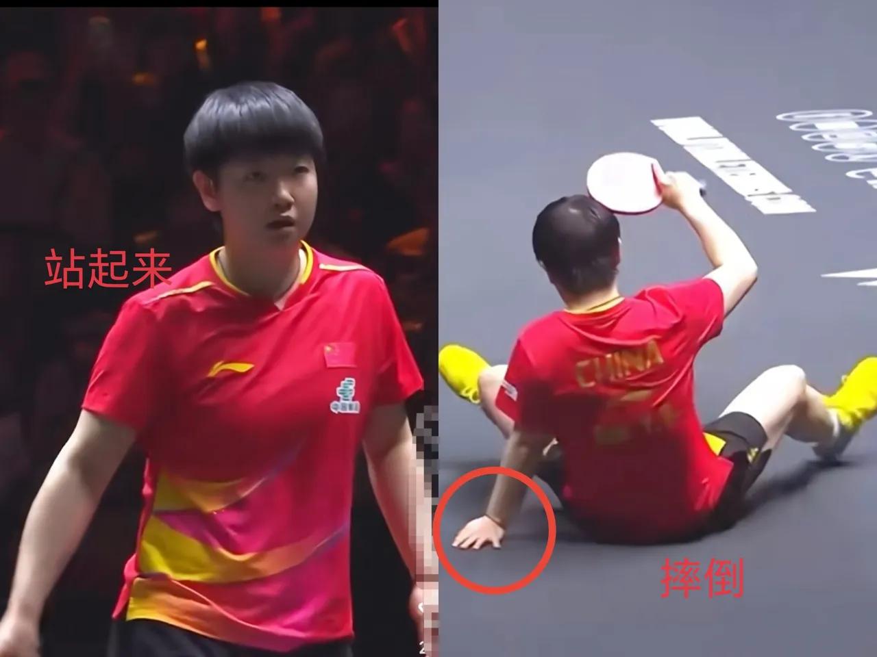 下意识的动作藏不住事儿,看表情、盯细节就懂,孙颖莎摔倒后是在硬扛着。 之前莎莎和王艺迪比赛,为了救一个开角特别大的球,她右脚猛地一滑,“咚”一声就往后摔在地上。当时球场里全是“啊”的惊叹声,满场都是替她捏把汗的。 再看她的表情,疼得眉头都拧成疙瘩了。刚爬起来,先悄悄活动了下手腕,又用手按了按膝盖——准是摔的时候扭着了,劲儿还不小。可莎莎没喊暂停,就稍微缓了口气,赶紧调整好状态,接着往下打比赛。 这姑娘就是在硬撑啊,看着真让人疼。她把疼都憋在心里,露在外面的全是不服输的韧劲儿。说实在的,莎莎这不是逞强,是对比赛真上心,把每一分都看得重。这么踏实能扛、对事儿认真的小姑娘,不光球打得棒,这份不轻易放弃的拼劲儿,更让人打心底里佩服!