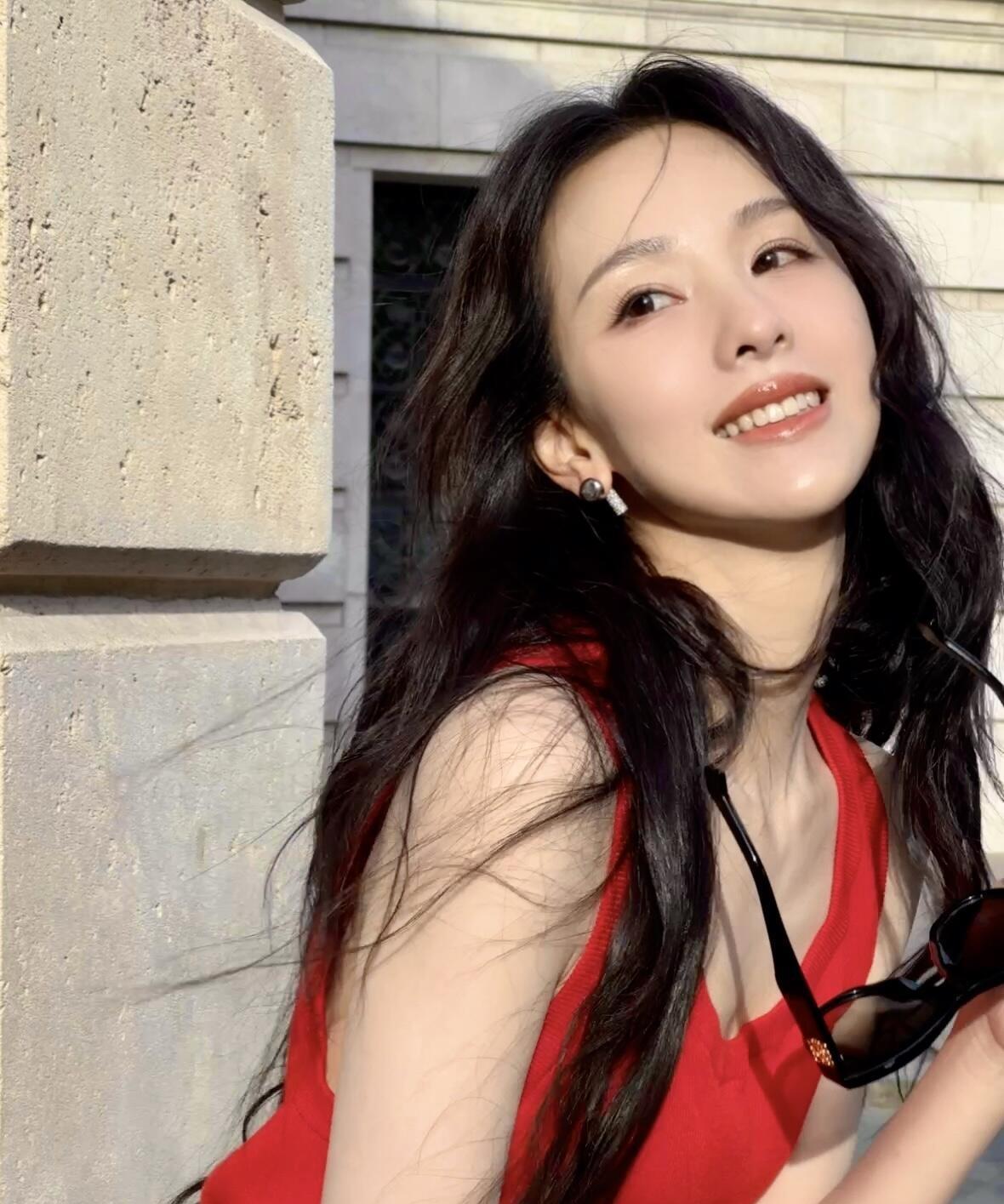 陈都灵巴黎时装周看秀的造型出来啦! 她穿的这身衣服,简单但设计感超足,气质拿捏得