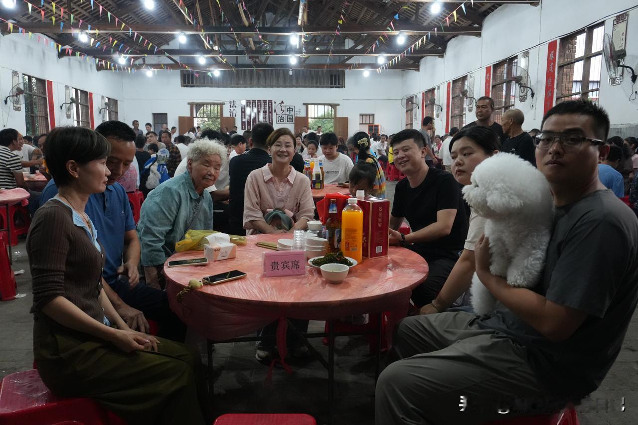 这个国庆节,有幸参加了江华瑶族人的婚礼,吃到正宗的瑶族人民的宴席! 湖南永州江华是全国最大的瑶族自治县,被誉为神州“瑶都”!侄女的老公是江华瑶族人,他们这个国庆节举行婚礼! 婚礼摆酒席有三天!10月一号二号在村里,三号在酒店!我们作为女方亲戚,主要参加二号在村里的晚宴和三号在酒店的宴席! 瑶族村寨还保留了很多质朴的民风民俗!晚餐前,新人先去宗祠拜祖!酒席的摆放地在村里的礼堂,有40多桌,看上去简单的桌椅,但是菜品却丰富而厚重!猪牛羊全部是村民自己喂养宰杀!所以放心吃绝对没有科技狠活! 酒席上有一个荷叶粉蒸肉,打开荷叶里面的肉蒸得软糯清香,入口即化!侄女告诉我,这个菜品,他们办大事请宴席都是必须要上的一个菜,如果没有,就要按桌上人员每人给10元红包! 因为有喜事,村里还放了露天电影,这还是我们小时候经历过的事,没想到现在又看见了!