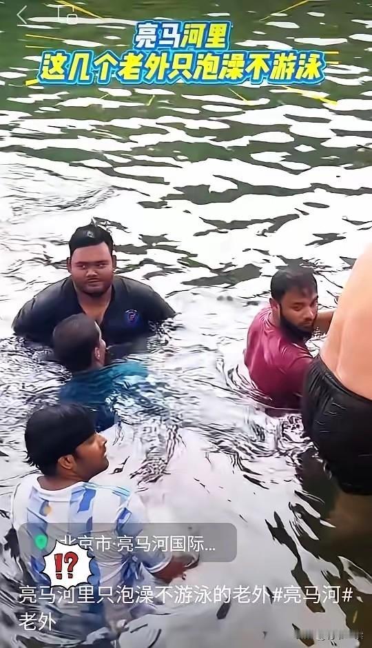 亮马河不是“野生泳池”,却被一群印度三哥搅了味。只泡澡不游泳的三哥,是下水扑腾的那种。。。 连中国幼儿园孩子都熟记的常识:不碰野泳、远离非正规水域,为何成了部分三哥的“盲区”?早有明确警示:亮马河作为景观河道,水下暗藏暗流,有淤泥,不是安全泳场。 别拿“文化差异”当挡箭牌,这从来不是破坏规矩的理由。就像我们出境时被反复叮嘱“入乡随俗”,尊重当地规则是底线;老外来华,自然也该守好中国的规矩。 一旦发生意外,投入的人力物力救援何其不值?法律面前人人平等,规则更不该是“选择性遵守”的摆设。 前一阵加拿大有个海滩因为全是印度人关闭了,海滩大肠杆菌等等粪便细菌严重超标,已经不适宜人类游玩了。印度三哥还是回恒河玩水吧! 我们需要让每一个踏足这片土地的人明白:尊重规则,才是对自己、对他人、对城市最基本的负责。