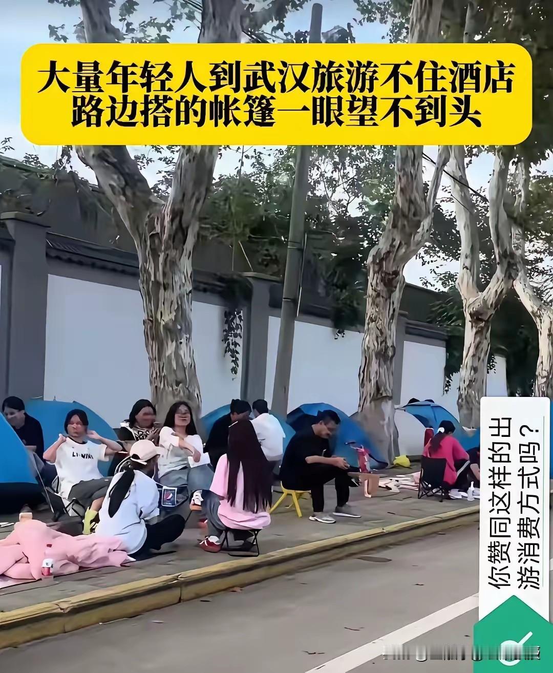 现在的年轻人把假期酒店的价格打下来了!很多地方的景区民宿和酒店都住不满! 面对各地旅游景区附近的高价民宿和酒店,这届年轻人可不再会被宰,硬着头皮去住高价酒店那是不可能的,看下图,他们搭起帐篷,住帐篷里,洗漱在公共厕所,这样省下酒店住宿的钱还能多玩一天。帐篷就是旅游特种兵的标配吧? 这是为了省钱穷游吗?还真不是。现在年轻人的消费观念变了,满足悦己的情绪价值很重要,住高级酒店眼睁睁被宰就让他们的情绪不好了,住帐篷性价比极高。钱要用在刀刃上,已经成为这届年轻人的共识。所以那些民宿酒店的老板们也要转变思路,想着趁节假日割韭菜大赚一笔的想法已经行不通了。