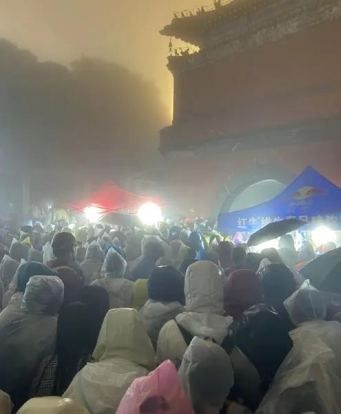 这些人是专门在山顶过夜等着看日出的,已经在房间里了又不是户外,发雨衣干啥