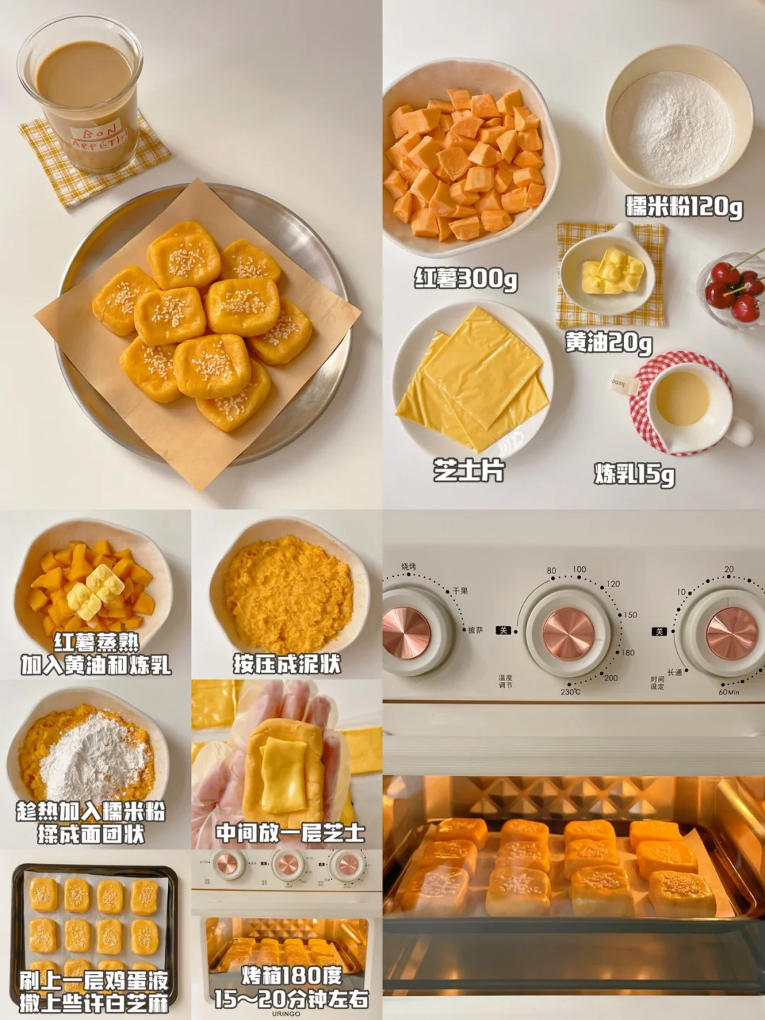 红薯300g/糯米粉120g/黄油20g/原味炼乳15g /芝士片
