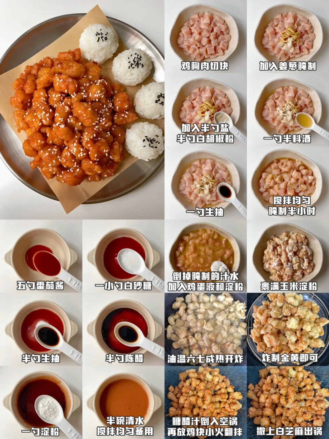 鸡胸肉400g /玉米淀粉/鸡蛋 /白芝麻 /糖醋汁