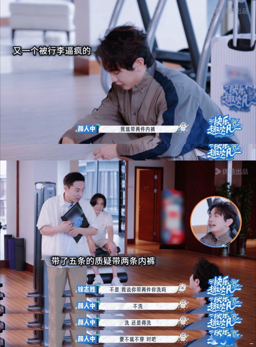 连内裤都不让艺人带的癫综出现了 《快乐趣吹风》行李额度卷疯了!秦昊40件占半,徐志胜10件里5条是内裤,高瀚宇揣着扑克核桃却空裆,这哪是旅游,是男星内裤大公开啊!