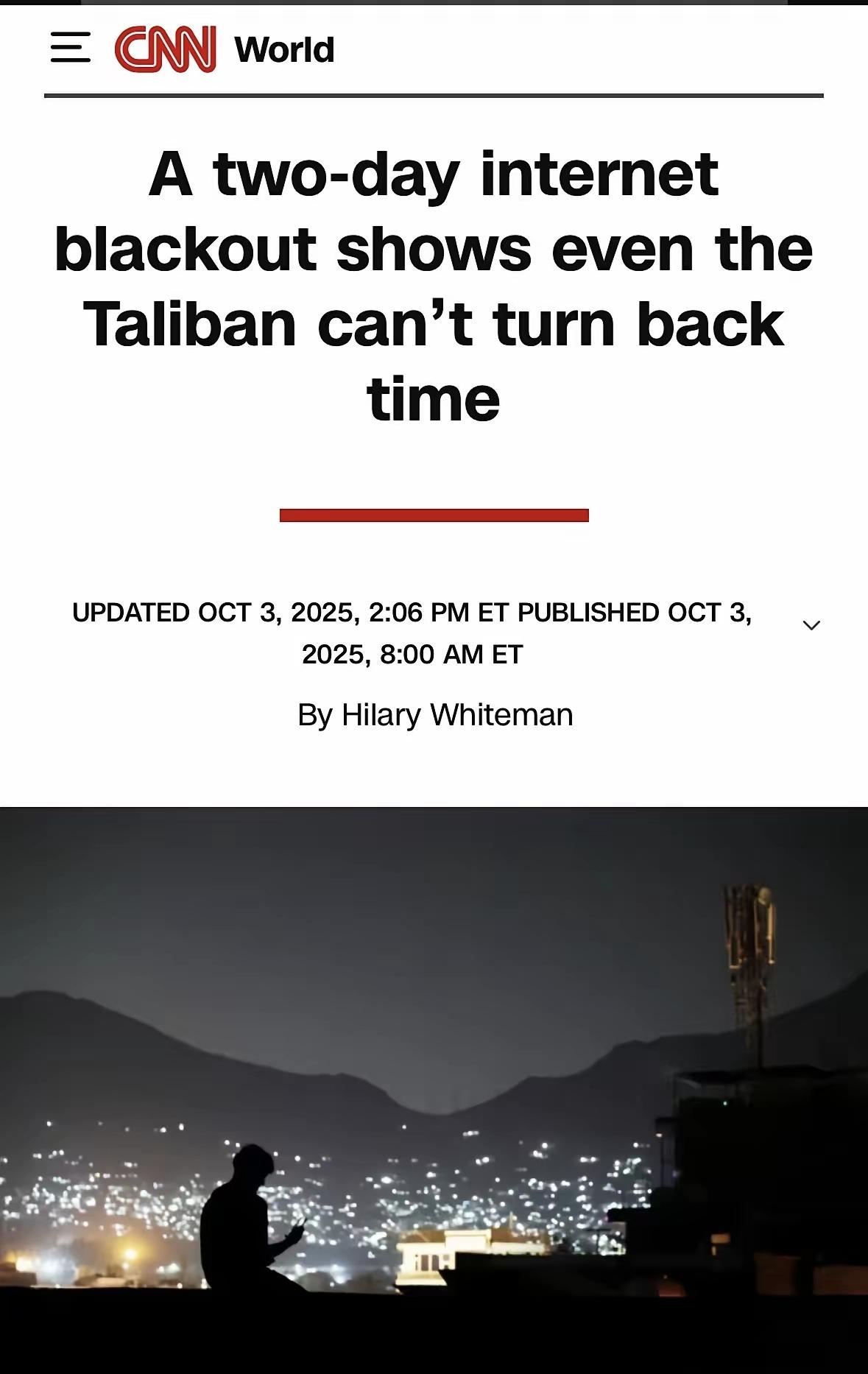 报道称,两天的互联网停电(断网)表明,即使是塔利班也无法让时间倒流。 在4