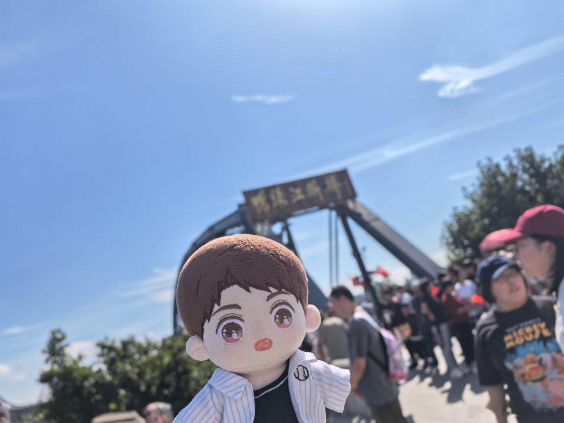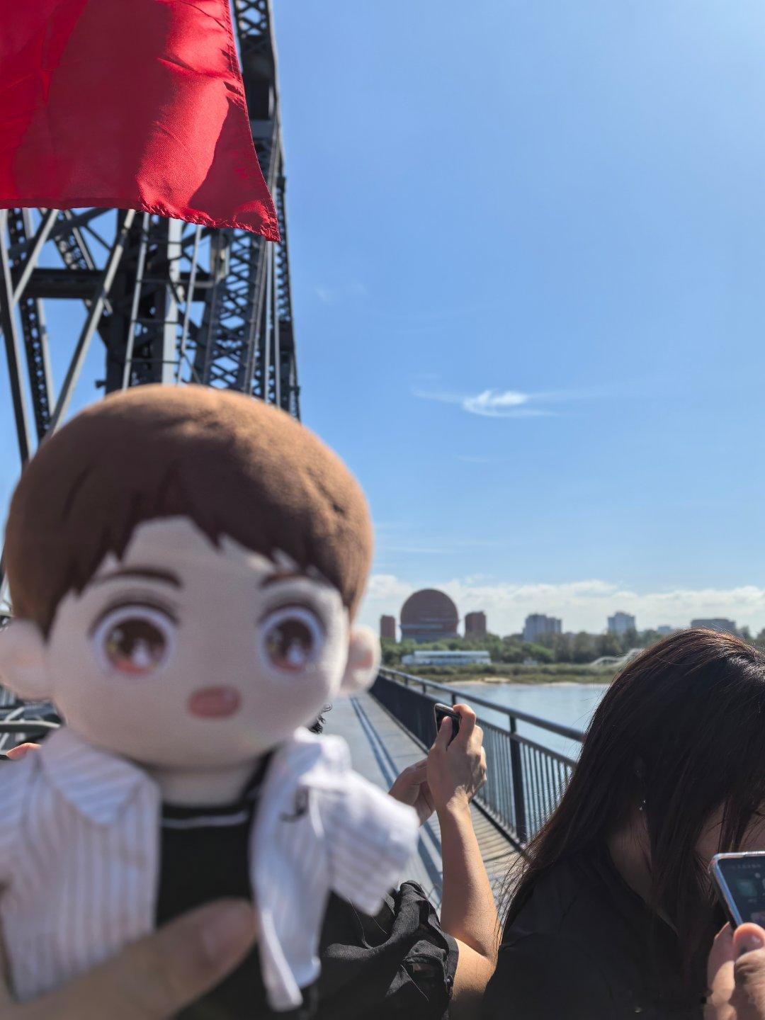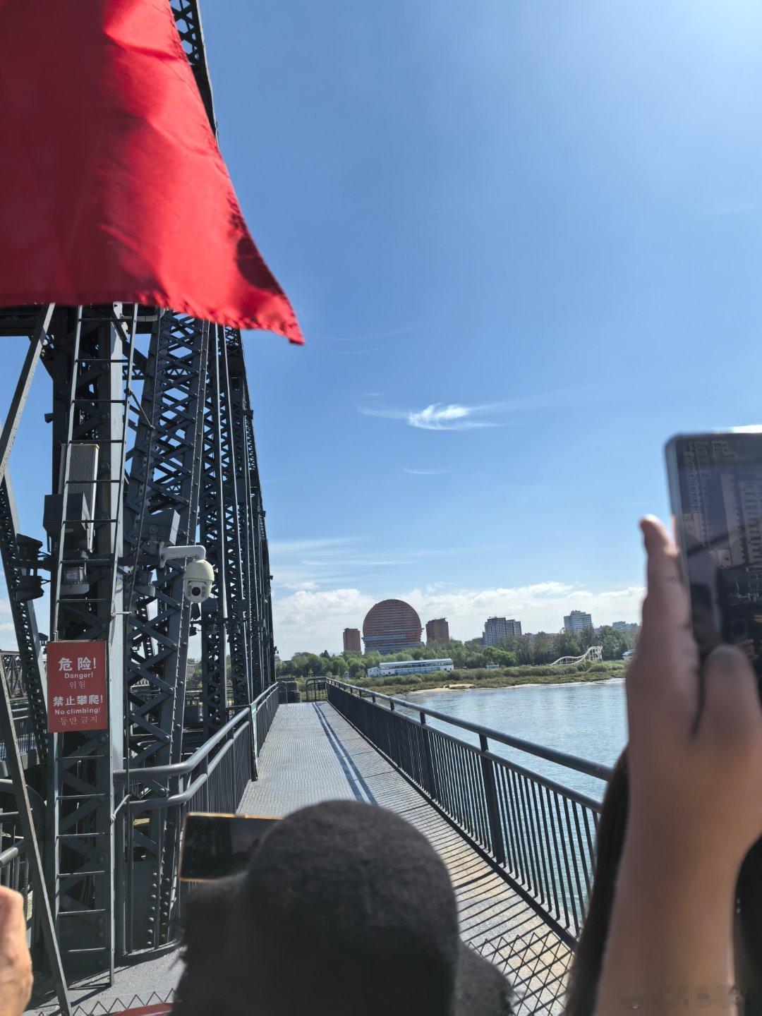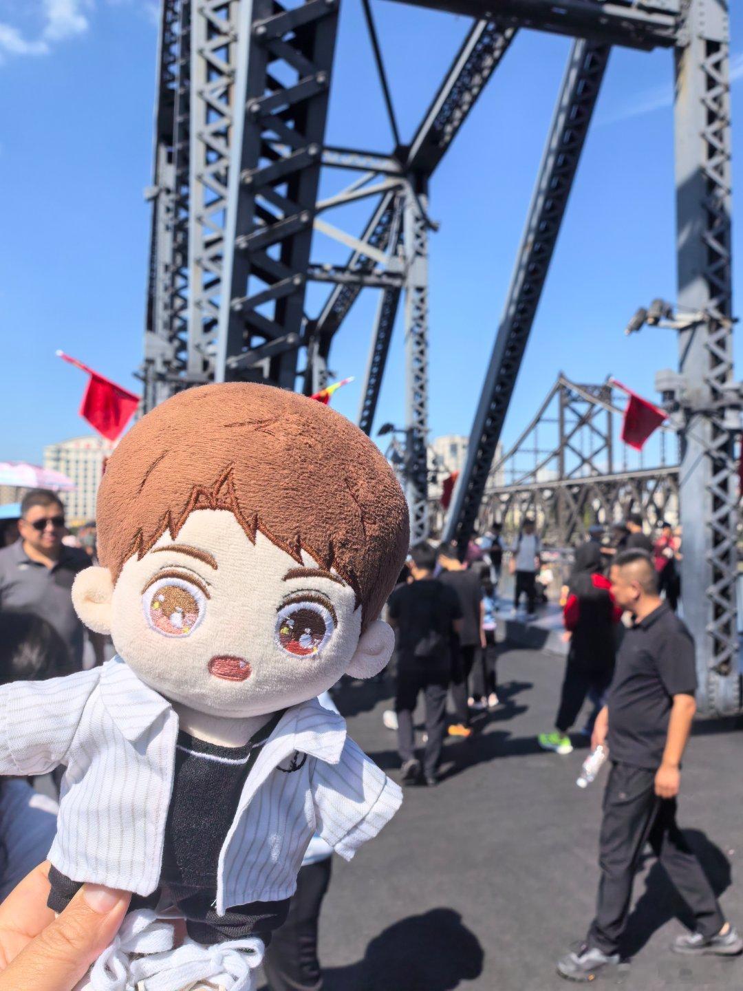 黄小鱼和黄小驰国庆游辽宁黄景瑜丹东文旅形象大使 断桥之上。