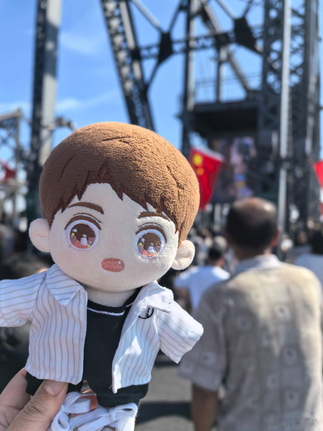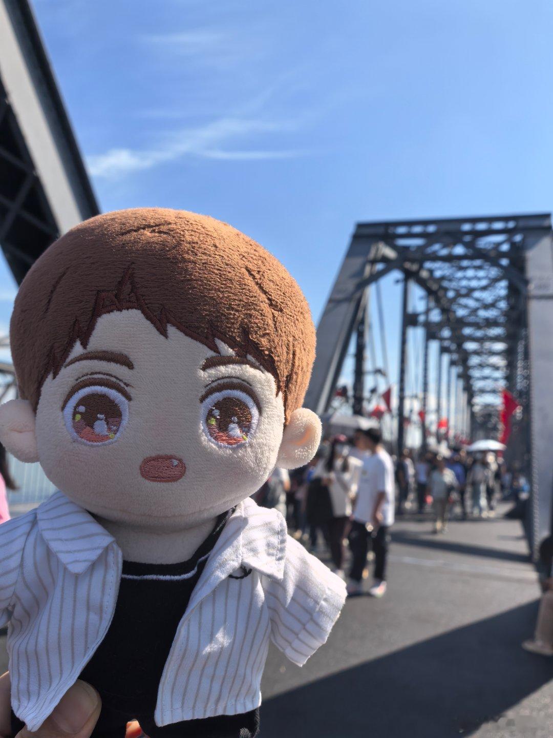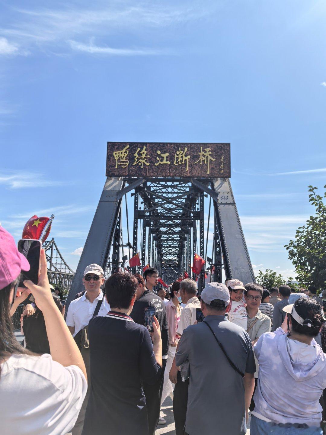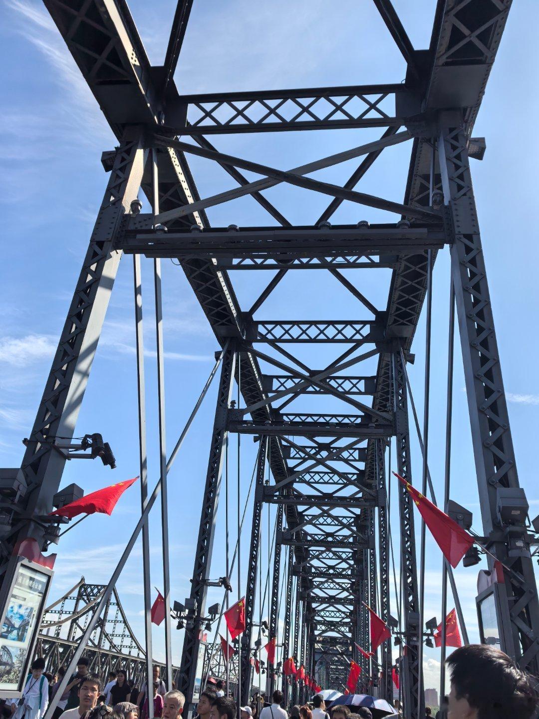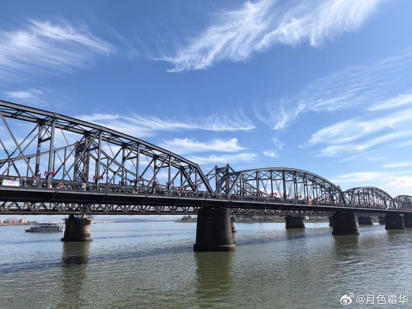 黄小鱼和黄小驰国庆游辽宁黄景瑜丹东文旅形象大使断桥之上。