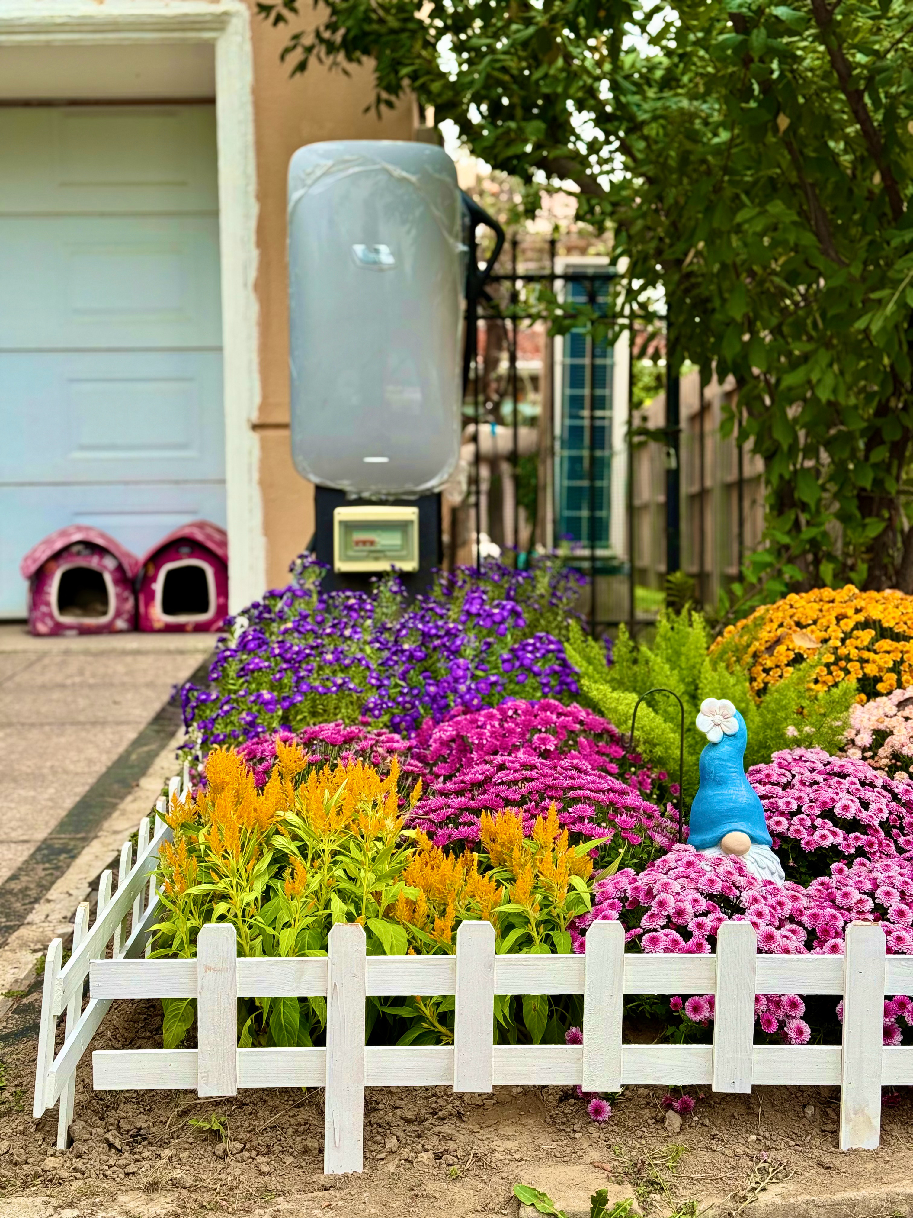 充电桩小花园正式完工了,加上了篱笆个小人,像模像样的。