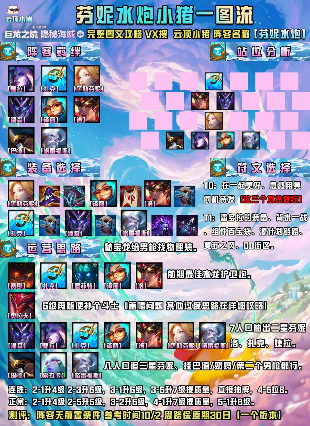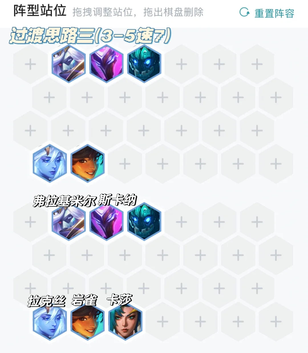 前期我大概总结了三套过度思路,最好是水龙过度连胜。最差是星界连败3-5速7启动强牌,这个具体要看大家实际对局牌怎么来了