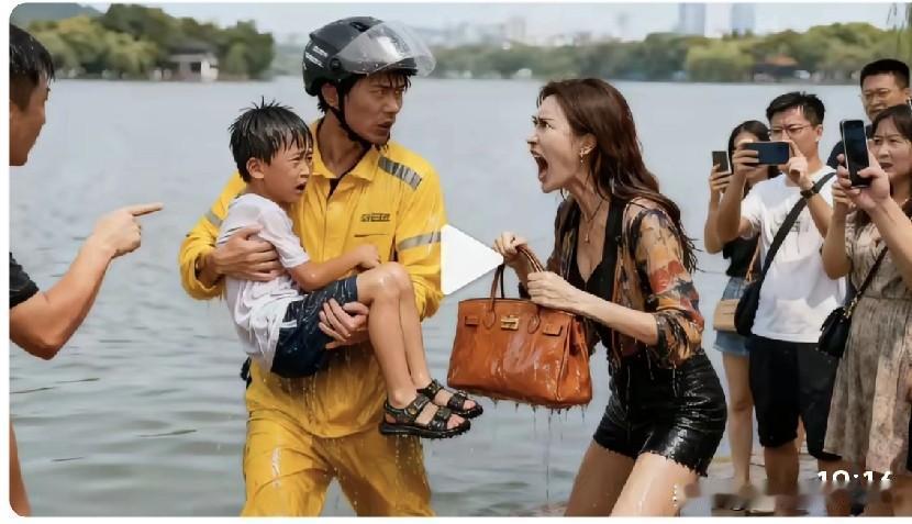 快递员跳河救孩子,却被女子指着泡水的名牌包索赔5万!人命和包包,哪个更该被看重? 江苏无锡一名快递员在派件途中,发现一名儿童在河边挣扎,当即跳河救人。 孩子脱险后,围观人群中一名身着潮牌的女子突然拦住浑身湿透的快递员,指着岸边被河水浸湿的名牌包索赔5万元。 该包为某奢侈品牌限量款,女子声称“救人是你的事,但弄坏我的包必须赔”。 此时,孩子父亲从医院赶来,得知原委后掏出500元塞给快递员:“这是给你的误工费,包的事我来处理。” 面对女子的纠缠,他当众质问:“我儿子的命和你的包,哪个更贵?” 网友发现快递员的电动车后座还挂着未送完的外卖,手机里有3个超时提醒,他为救人耽误了生计,却要为他人的“精致”买单。 快递员张哥救人时,浑身湿透的制服还滴着水,兜里的手机已经响了3个超时提醒! 他救人时啥都没想,就惦记着孩子的命,结果被穿名牌的女人堵住,指着泡汤的包喊赔5万。 说难听点,这包比人命金贵? 张哥一个月送500单外卖,挣4000块,女儿的人工耳蜗修一次就得花光积蓄。那女人举着包像举着尚方宝剑,说一码归一码,可她咋不想想,救人时溅起的水花,能比她直播蹭流量的心更脏吗? 张哥救人时摔了保温箱,里面的奶茶洒了,他可能还要赔客户钱。 而那女人的包,够他女儿换三个新耳蜗。这哪是赔钱,分明是拿穷人的善意吸血!网友说得好,救人时没见她跳下去,索赔时比谁都积极。 换做咱普通人,谁没个急事? 张哥电动车后座还挂着没送的快递,手机里全是超时警告。 他救人不是为了当英雄,是看不得孩子没命。可现在呢?他可能要借钱赔包,女儿的耳蜗又得拖,这世道,做好事咋这么难? 都说人命关天,可有些人眼里,限量款包才是天。 咱老百姓不求啥,就盼着下次看见有人落水时,救人的手别再发抖,别担心救完人还要卖房赔包。 毕竟谁都有爹妈孩子,谁都想被好心人拉一把啊!