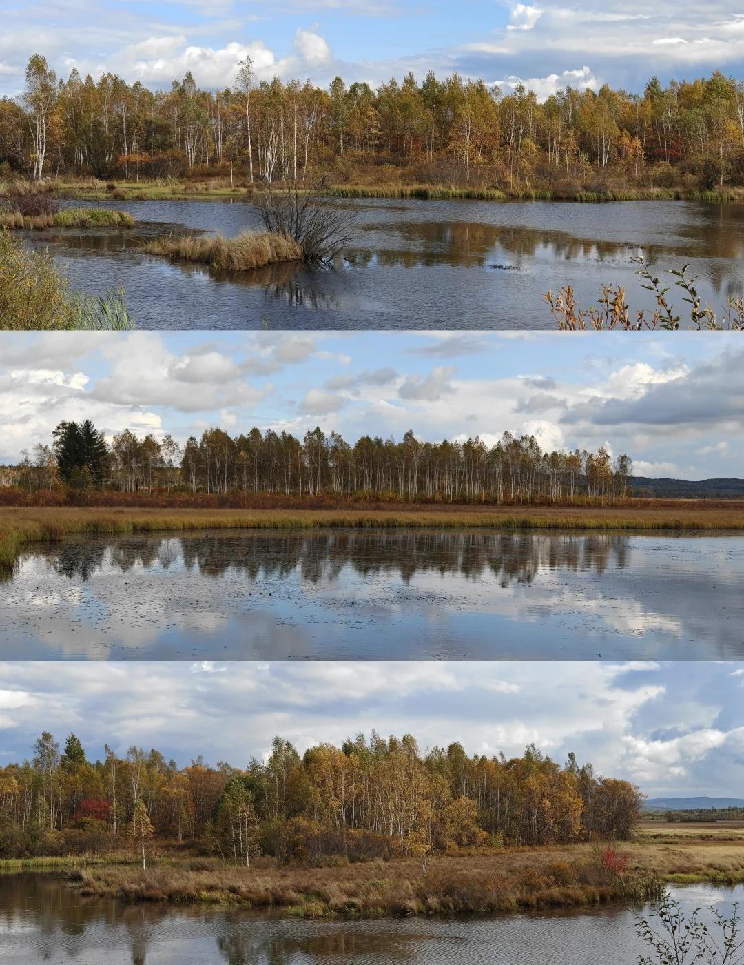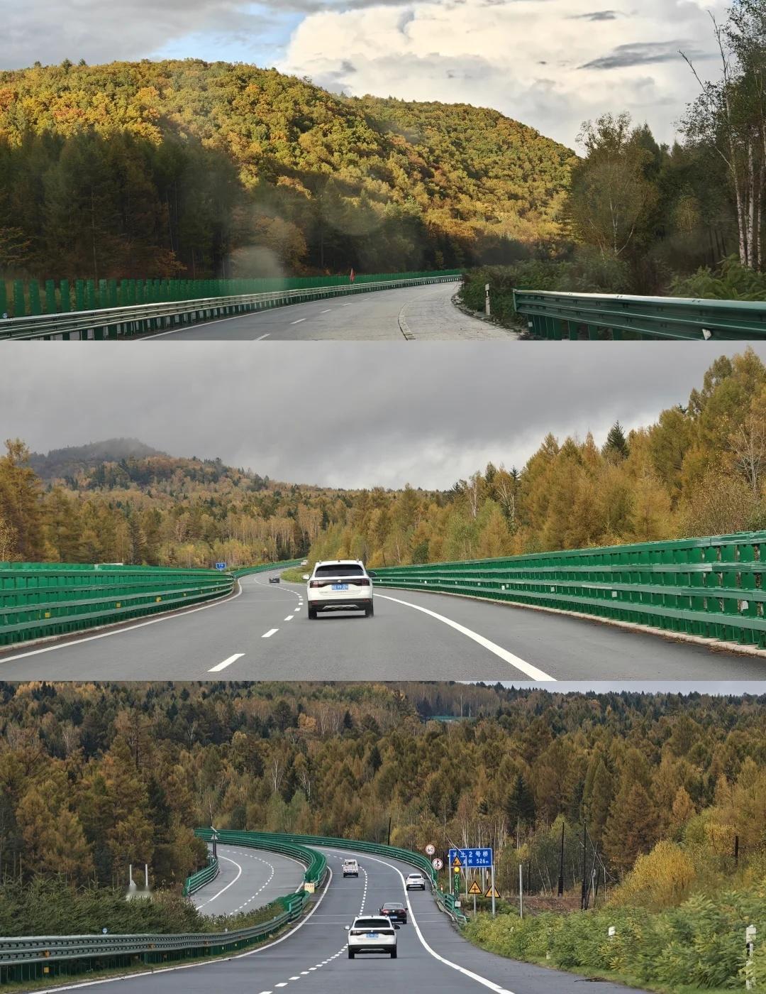 小兴安岭 | G222伊春 - 汤旺- 嘉荫 /机场路 2025.9.25,小兴安岭自驾游第五天;前一天下了一天的雨,今天天气还是阴天,偶尔有雨。 G222伊春 - 汤旺- 嘉荫,先去网红机场路,然后经过溪水公园,回到G222至嘉荫,沿途看了新青湿地公园;快到嘉荫时,看到了彩虹与晚霞。 早餐后从伊春伊美区出发,先去著名的机场路网红弯(实际景色很一般,路两边裸露的泥石太多),导航到"溪水公园",途经点设为"梅花河山庄",就可以经过网红弯,一路上都有「网红枫叶路」的路牌指示。然后顺路去说了溪水公园(没进去),外面的湖边蛮好看的。继续前行,就上了G222国道,沿路的五花山已经非常美。 下午了到达了新青湿地公园,马路边看到的和进去看到了,都非常漂亮,太阳也出来了,蓝天白云湖水与彩林,下午三点半还有放鹤的活动,然后就突然下了一场阵雨,雨小后,继续往嘉荫方向走。 太阳出来后,路边的五花山一下子亮得起来,同行的惊叫起来,金光晒在树上,快到嘉荫前,有个「青山服务区」,看到了雨后彩虹,满眼都是金色的;彩虹只持续了一会儿,消失后继续向今天的住宿地嘉荫出发,路上看到了落日与晚霞。 为什么没去五营、汤旺河石林、茅兰沟,因为风景在路上,这些景点确实很一般,夏天来可以去。 晚餐吃了嘉荫的花鱼,太贵了,一条鱼的价格在哈尔滨可以团购吃一桌6-8人餐,口感味道也很一般。 小兴安岭 伊春五花山