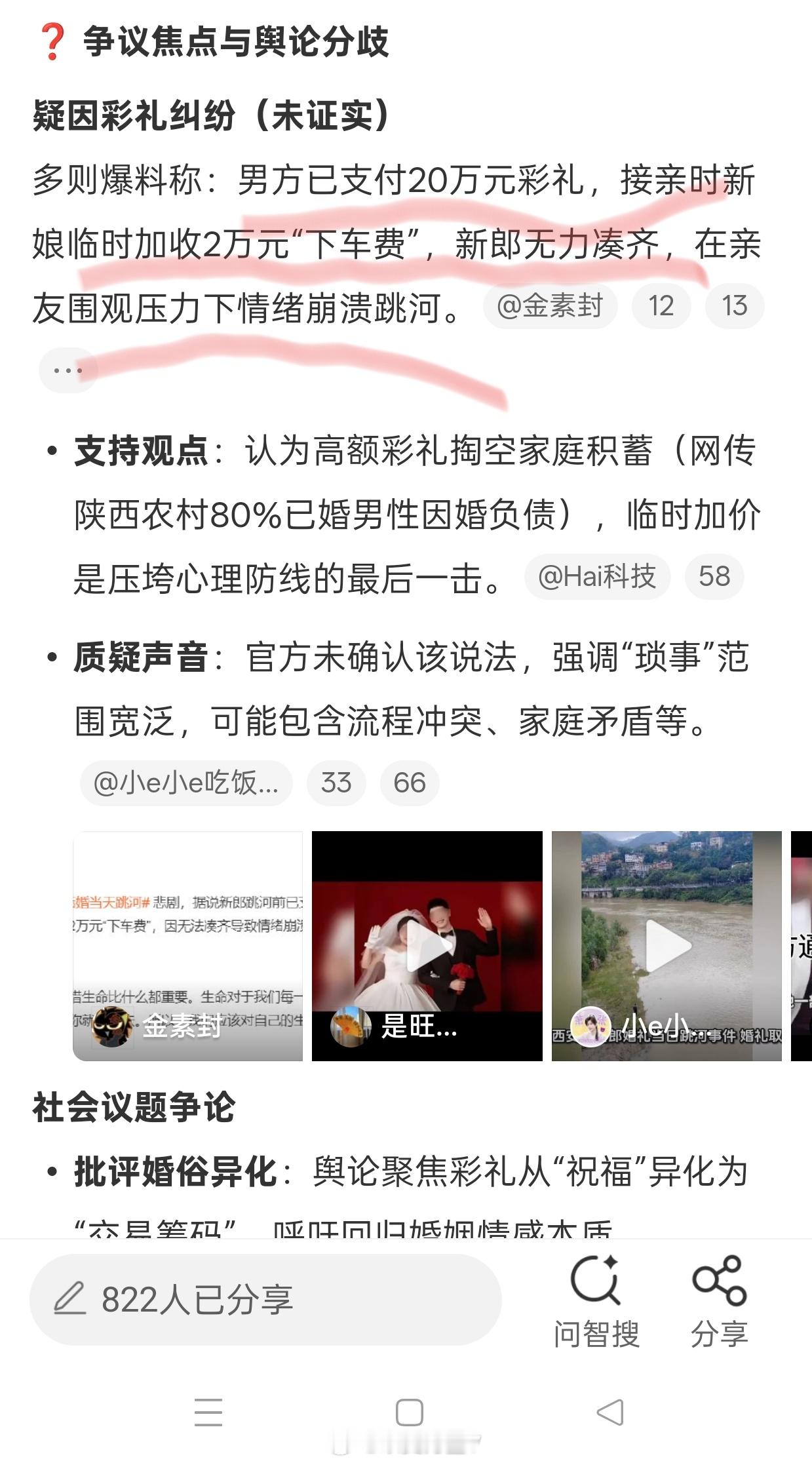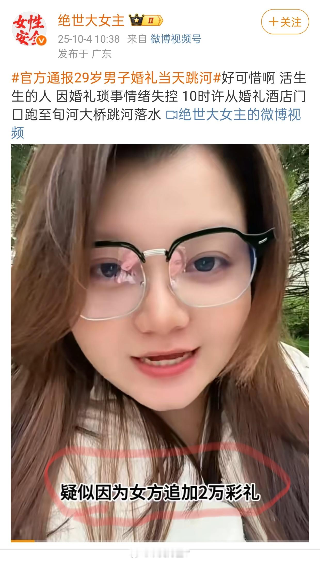 现在婚姻、彩礼、涉及性别对立本来就是网络上热议的点,再加上这个惨痛的跳河案例……