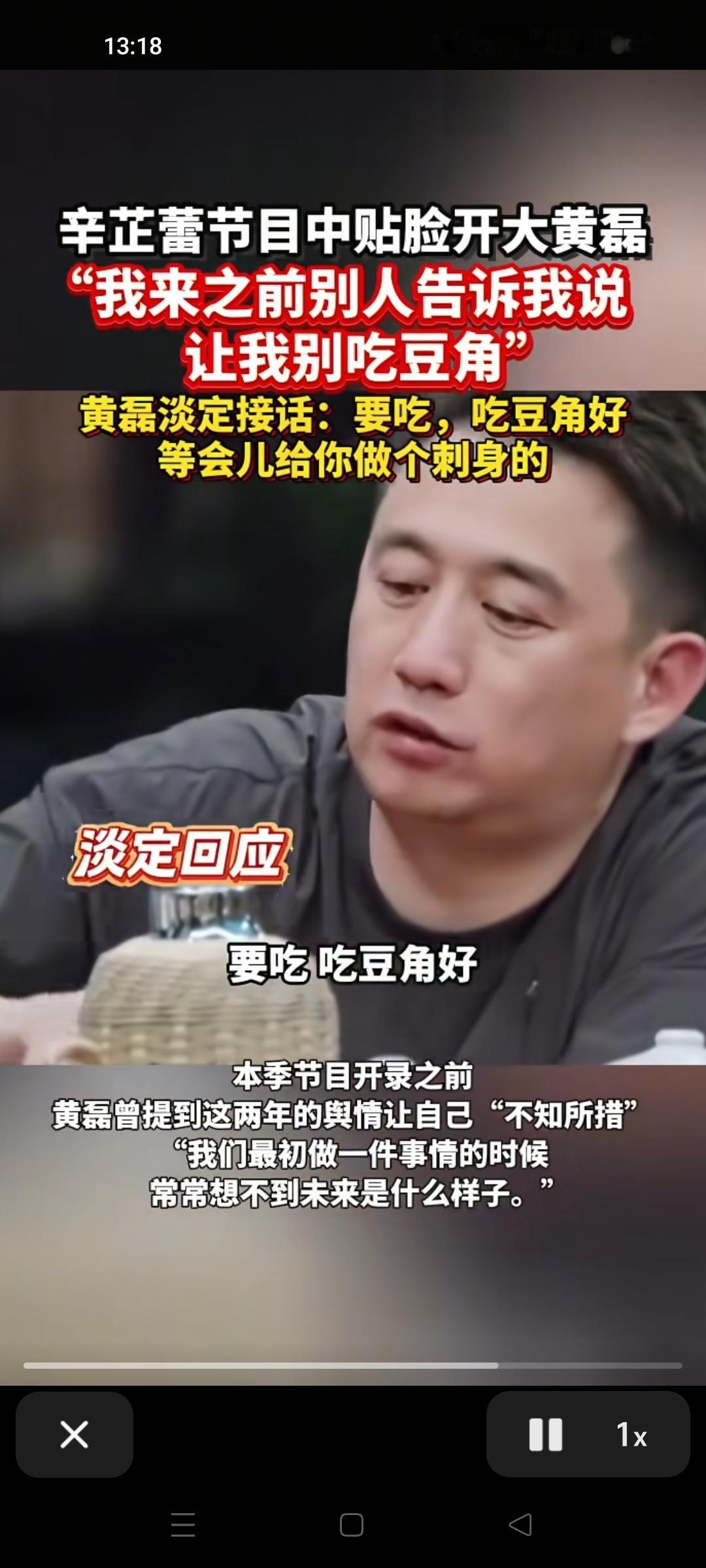 黄磊:我做的菜真好吃, 何老师经常夸我, 彭昱畅在更是直播中直言“师傅做饭好吃”,并幽默地提到自己因为黄磊的美食胖了一些。陈赫也在直播中多次强调黄磊做的饭真的好吃,还举例说黄酒炖红烧肉以及肘子更是一绝。孙红雷也对黄磊的厨艺赞不绝口,能让孙红雷这样的“吃货”认可,说明黄磊的厨艺确实不错。 2017年,他在节目中与宋丹丹试吃未熟豆角导致中毒,引发了网友的关注和讨论。 在2025年10月3日播出的节目中,新嘉宾辛芷蕾提到“我来之前别人告诉我说,让我别吃豆角”,黄磊以幽默的方式回应:“要吃,吃豆角好,等会儿给你做个刺身的”。 别人说黄磊的厨艺不行,那些说他做菜好吃的人,都是逢场作戏。 真正做饭好吃的是贾冰 大家说一下,黄磊的厨艺到底怎么?黄磊 黄磊做饭 黄磊名场面 黄磊炒菜