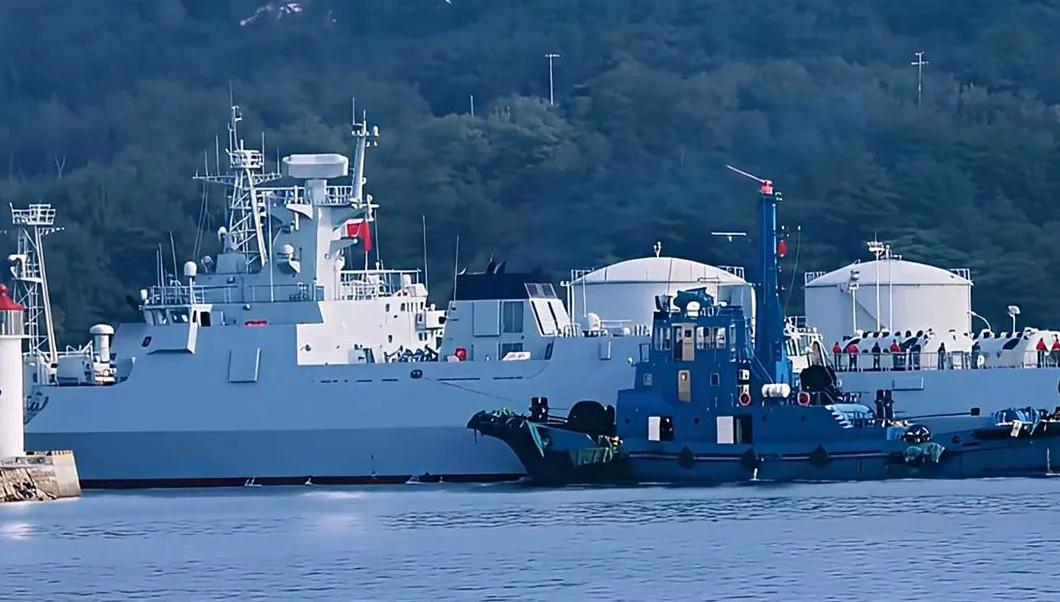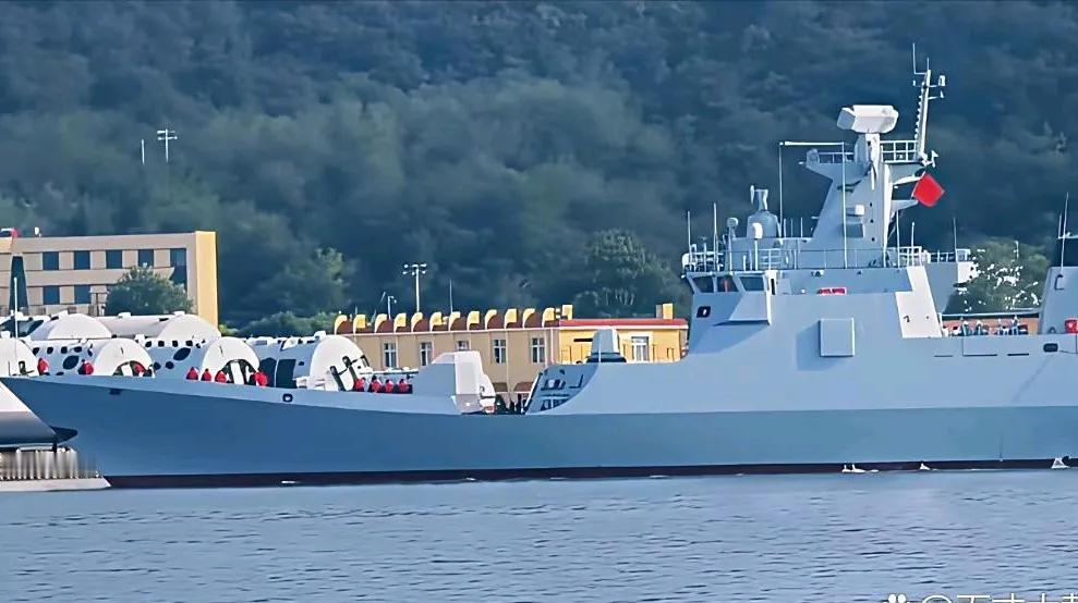 图片中的这艘056改进型护卫舰,应该属于顶配版本,最耀眼的就是不同于056型的3