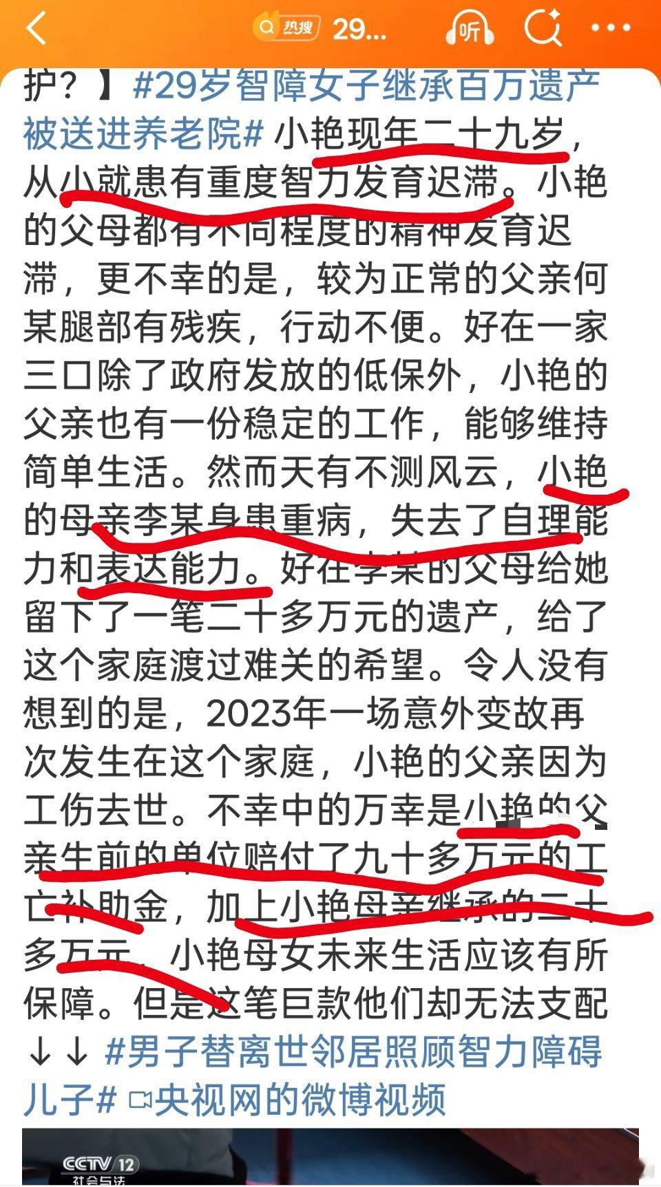 29岁智障女子继承遗产后被争相照顾这个姑娘以后的日子面对的全都是算计………怎么才能保护这对可怜的母女啊??[无聊][无聊][无聊]