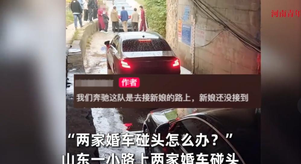“离了个大谱!”10月3日,山东菏泽,两家婚车车队在一乡间窄道上碰头,两边僵持了