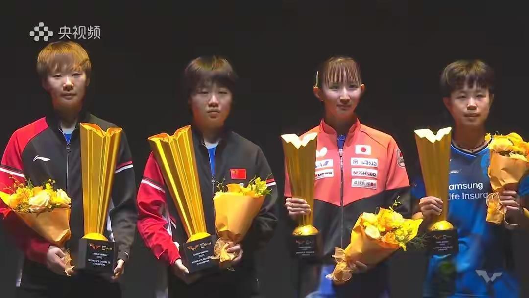 祝贺曼昱/蒯曼组合如愿勇夺女双冠军,双曼能力所在,实至名归。 看看早日希娜/朱芊曦组合,虽然拿了亚军,但是她们比拿冠军的双曼更高兴,尤其是早田希娜。因为她们毕竟拿了一枚奖牌,比那些颗粒无收的运动员好多了。