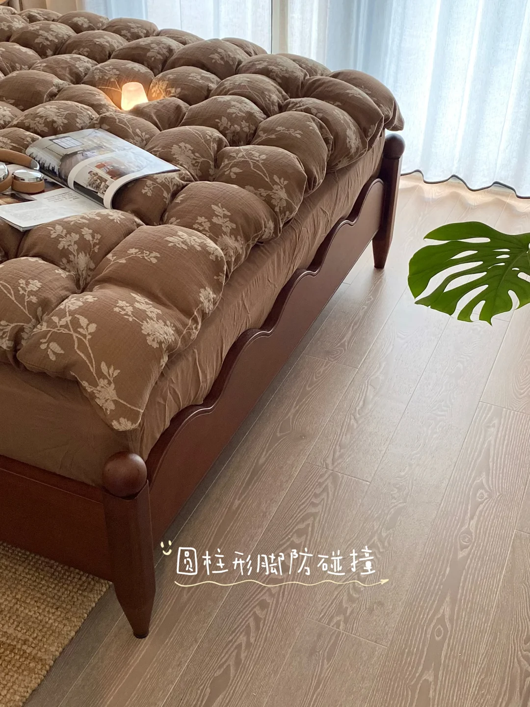 亲肤细腻的牛奶绒,摸起来软乎乎的,幸福感爆棚🥰。床底15厘米高,扫地机器人来去自如,再也不怕有卫生死角啦!