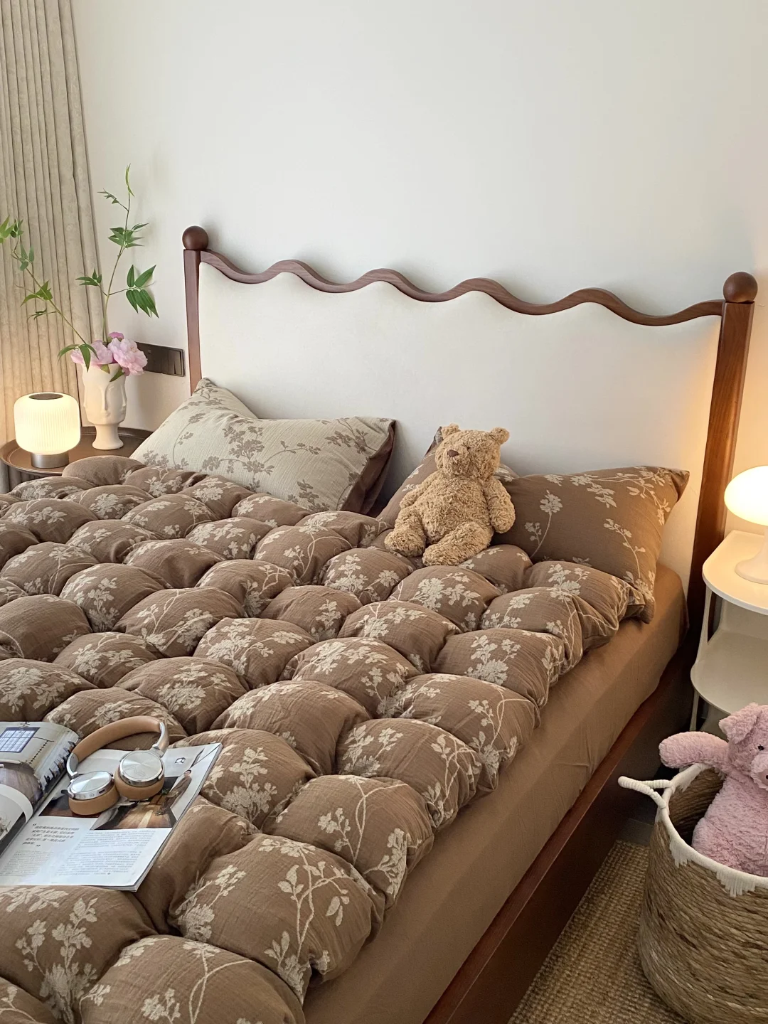 床头床尾的波浪涟漪造型,浪漫氛围感直接拉满🌊。