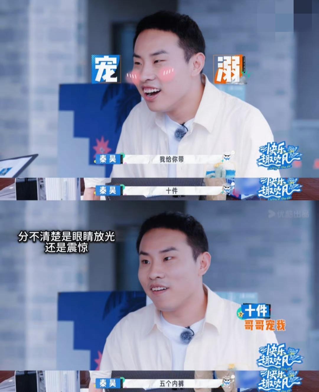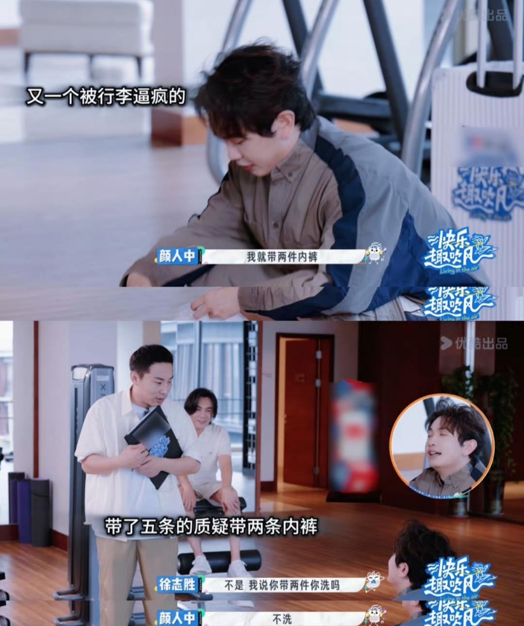 内裤都不让带的“癫综”,田嘉瑞快把人笑疯! 刷到《快乐趣吹风》的先导片,才算见识到什么叫“内娱癫综天花板”!节目组居然搞出6人共享80件行李的规则,连内裤都算一件额度,直接把艺人们逼出“生存智慧”。 田嘉瑞这小子真的承包所有笑点!为了多带一条内裤,居然把内裤挂身上当装饰,被网友笑称“时尚与实用的完美结合”。更绝的是他和秦昊即兴飙戏,一句“前辈就能这样?”气场全开,下一秒为行李额度手忙脚乱,演戏的信念感和综艺的真实感切换自如。 从宣传片里大张伟打坐、徐志胜算内裤换洗周期的名场面来看,这档节目绝对是笑点制造机,已经开始期待正片了。