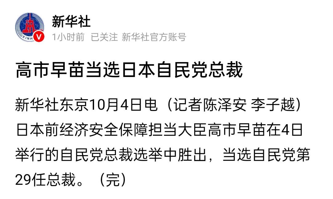 高市早苗当选自民党总裁,离日本首相的大位,仅一步之遥。 日本即将要诞生第一位女首
