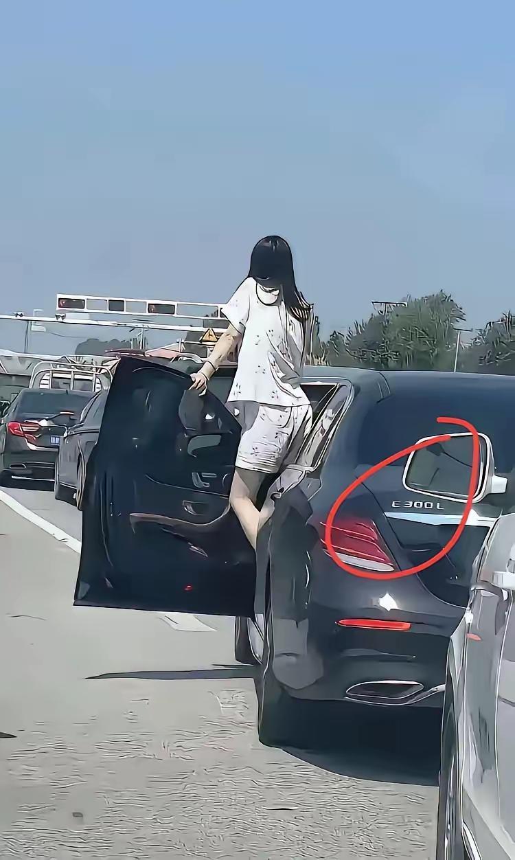 奔驰上的睡衣姐戳中多少人刚被堵在高速上动弹不得,前面奔驰E300突然下来一位