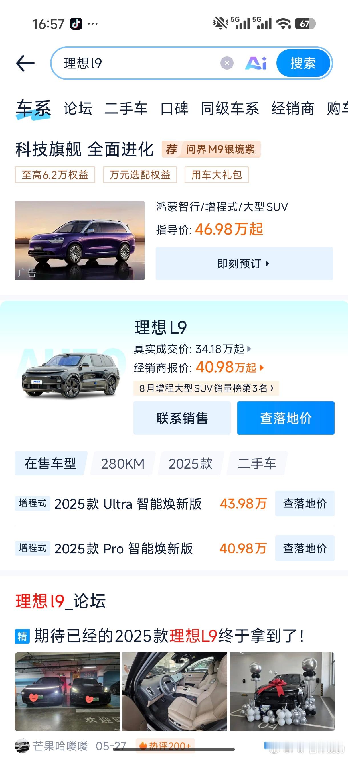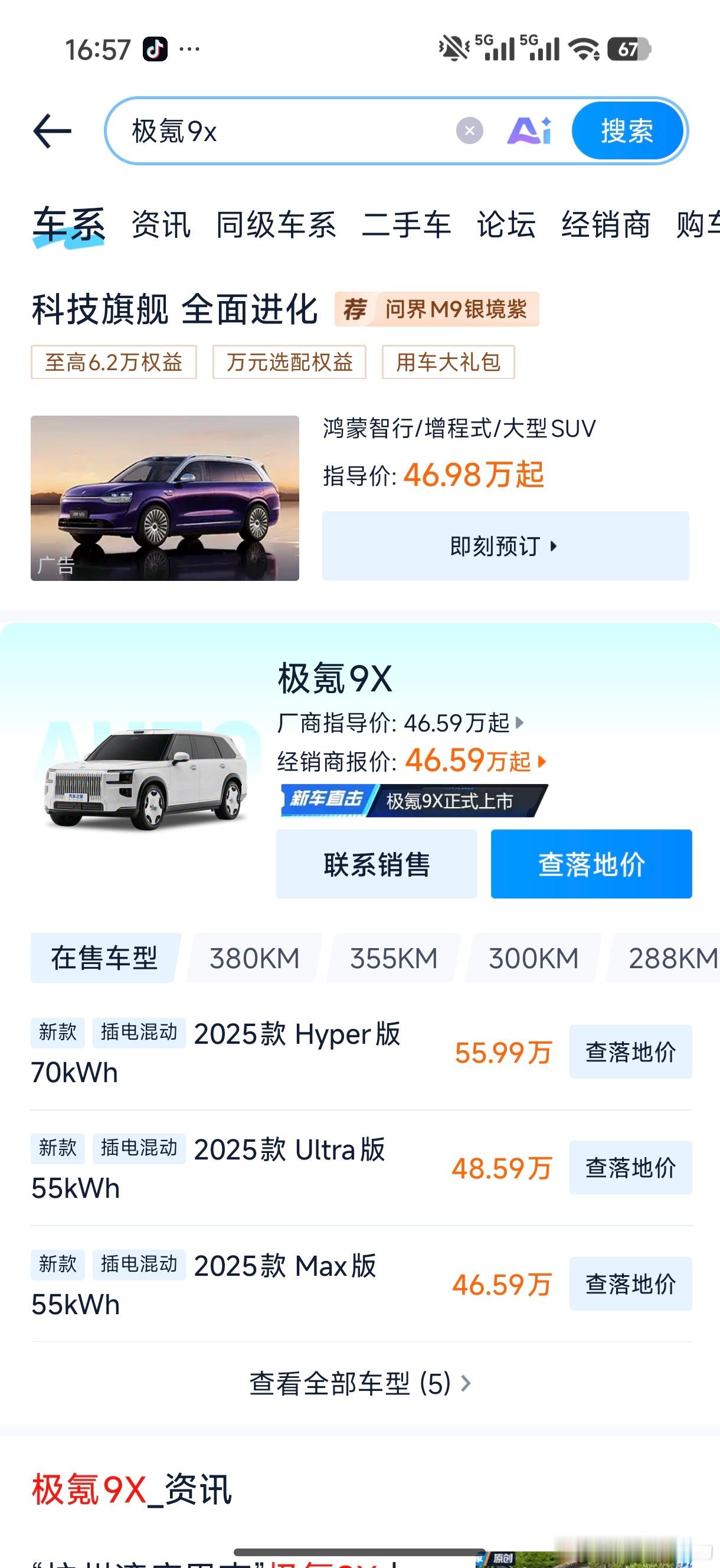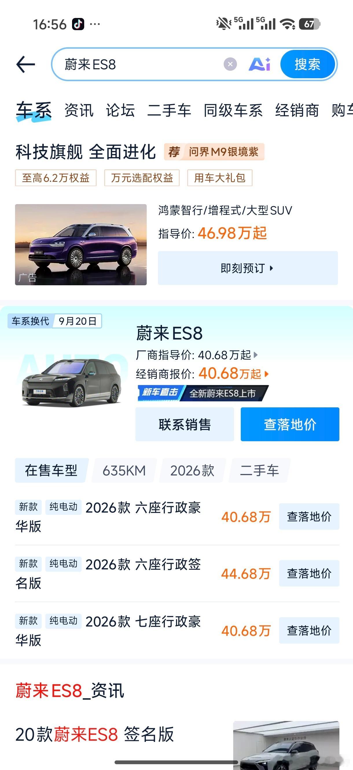 之家上我搜索蔚来es8,理想l9和极氪9x第一个均出现了某一车型[哼]