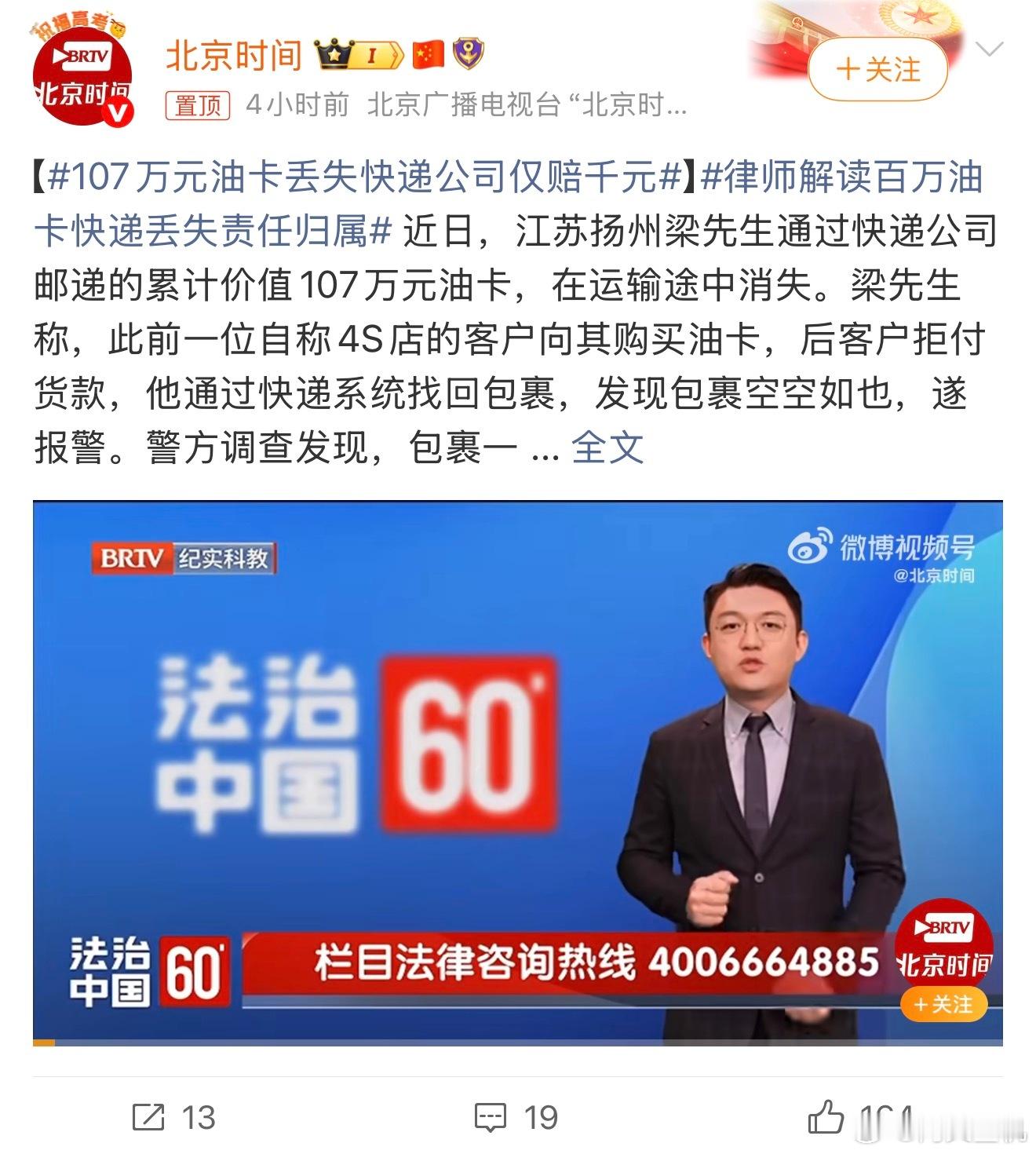 107万元油卡丢失快递公司仅赔千元这也太离谱了,百万的油卡保价了丢失只赔千元,看