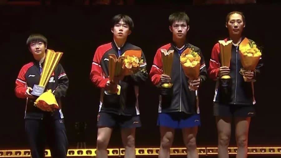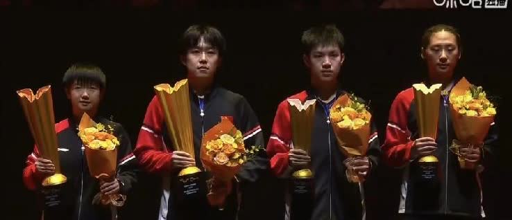 谁看到能不笑? 孙颖莎凭一己之力孤立他们仨! 真是莎局和腿局之间的较量,陈熠竟然比两个男生都高,三个人长高没告诉孙颖莎, 三个人穿短裤也没告诉孙颖莎,只有孙颖莎穿的长裤,一定是穿长裤太压身高了,不过显得孙颖莎更加可爱了[送心] 这也更加体现出孙颖莎的强大,小小身躯,大大能量。 虽然孙颖莎身高比不过他们,但是孙颖莎举奖杯是最高的[耶]孙颖莎最棒[赞]