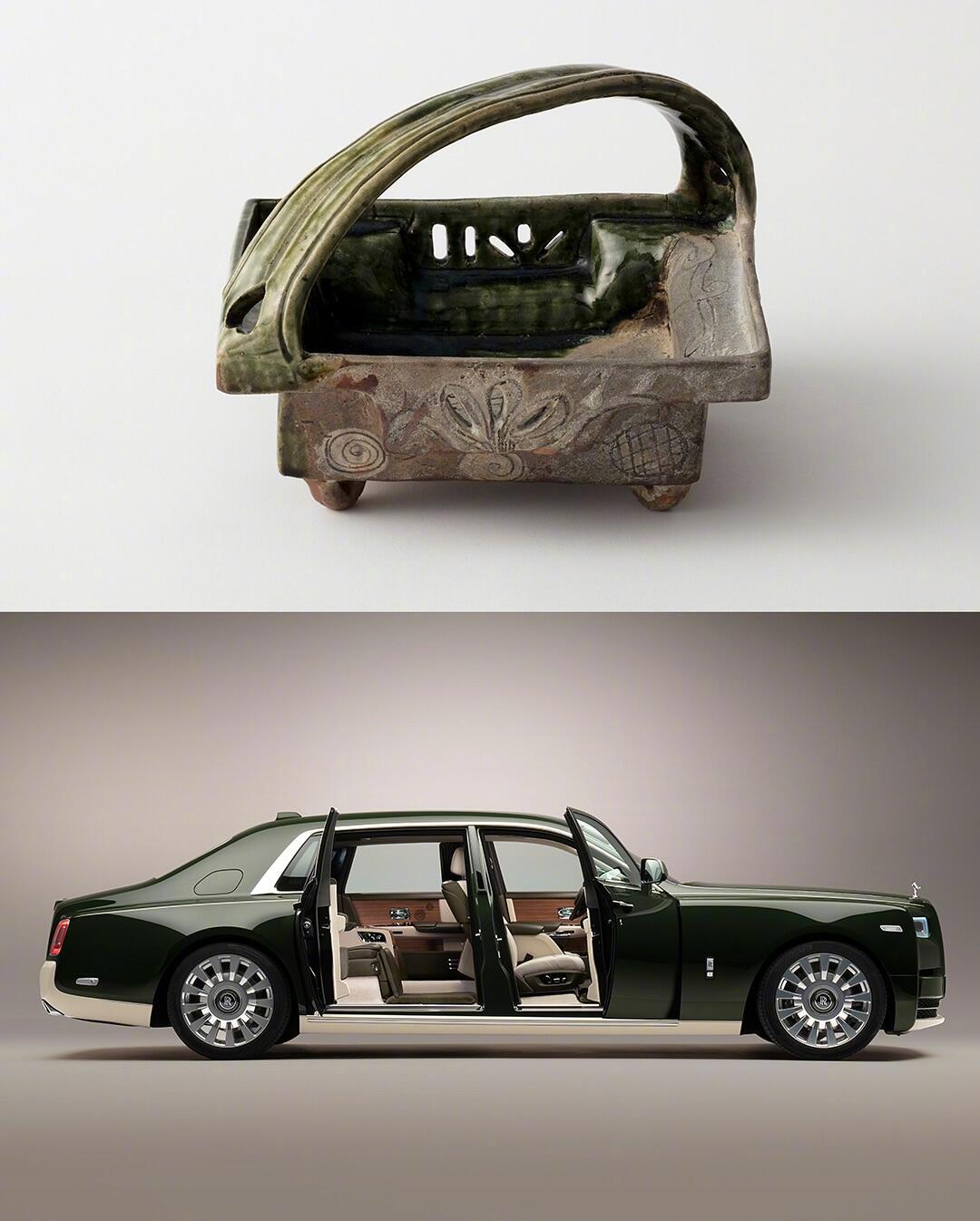 由日本企业家与艺术收藏家前泽友作(Yusaku Maezawa)委托打造的 Phantom Oribe,是劳斯莱斯与爱马仕(Hermès)合作推出的一款量身定制车型。其设计灵感来自前泽收藏的 16 世纪织部陶器,这类陶器以鲜明的绿色釉面和非对称之美而闻名。