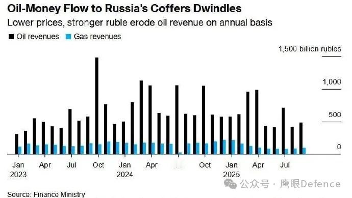 乌克兰针对俄罗斯能源工业的打击可谓双管齐下,同时打击俄罗斯炼油业和俄罗斯的石油、天然气出口。彭博社报道称,因为油价下降、卢布走强、制裁以及炼油厂遭攻击被迫将更多石油降价出口等缘故,俄罗斯9月份的石油出口收入为4850亿卢布,石油和天然气出口总收入则为5825亿卢布,相比去年同期分别下降了20%和25%,俄罗斯出口能源的收入正明显减少。