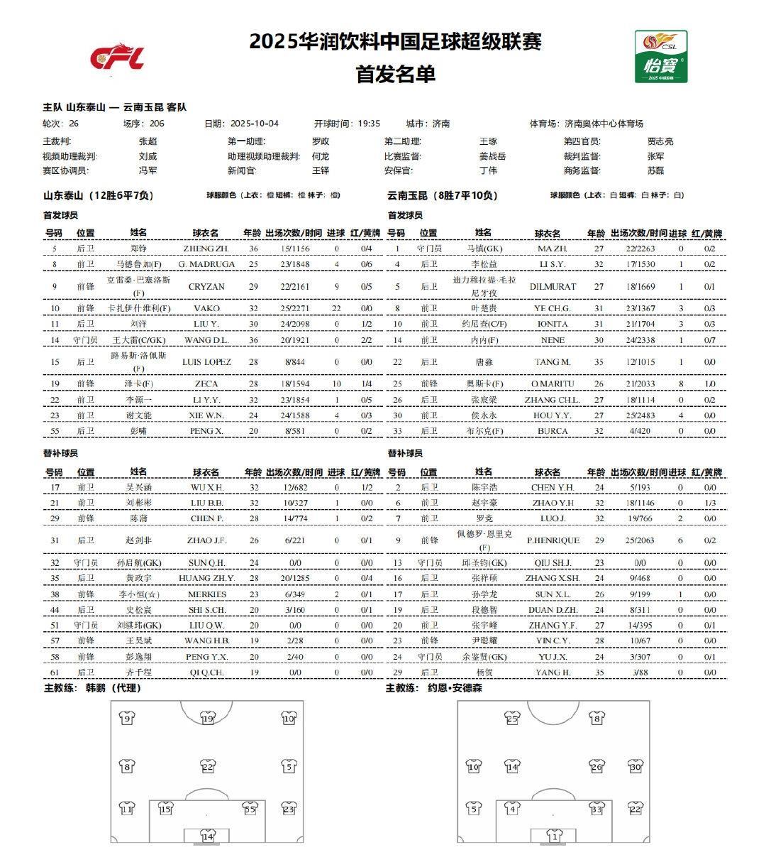 泽卡首发了 山东泰山主场迎战云南玉昆,首发来了: 郑挣、卡扎伊什维利、克雷桑、马德鲁加、刘洋、王大雷、刘洋、洛佩兹、李源一、谢文能、彭啸、泽卡 看完首发,你能知道: 一,泽卡,能首发,说明身体无大碍了! 二,替补新面孔,齐千程应该有望替补登场 三,替补年轻球员:王昊斌、刘骥玮也会有机会的#泰山外援##中超泰山队# #今晚泰山队#
