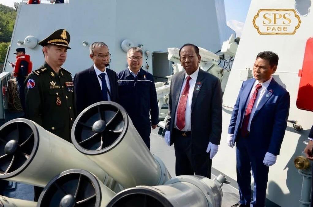 柬埔寨官宣,中国援助柬埔寨的两艘056C轻型巡防舰(此处C代表柬埔寨而非056A的改良型号)计划进展顺利,目前首艘舰已经完成建造和测试,第二艘的建造工作也完成一半。 柬埔寨国王最高顾问、前国防部长狄班10月3日在社群媒体上透露了这一消息。从他分享的照片(图1)分析,056C安装了SR2410C型AESA雷达,优于共军自用056A的H/LJQ-360雷达。图5为辽南造船厂建造的外贸巡防舰,在76mm炮和舰桥之间增加了2座630防空炮,先前被解读为出售阿尔及利亚的F-15A巡防舰后续舰,但亦无法排除是柬埔寨订单的可能性。