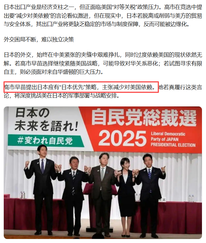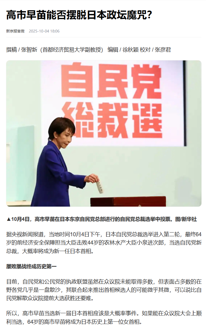 3,新自由主义。主张削减社会福利,反对日年轻人躺平,希望日本社会再卷一些。[吃瓜]新一任日本首相高市早苗当选新任自民党总裁