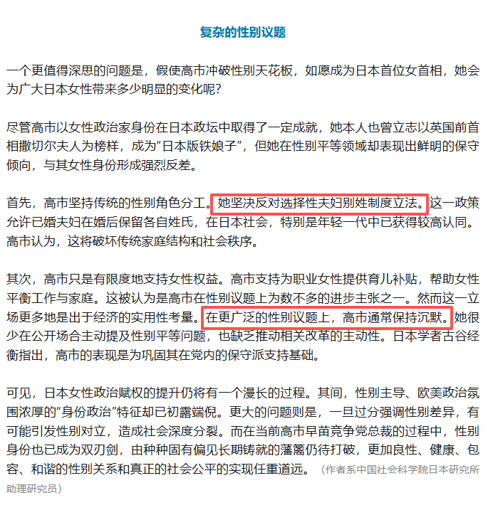 1,在日本极度男女不平等的社会当女首相,却强烈主张女性婚后冠夫姓,甚至公开宣称“女性应回归家庭相夫教子”这种非常不正确的话。(这也能解释她的上台居然没有引起某些群体的喝彩)