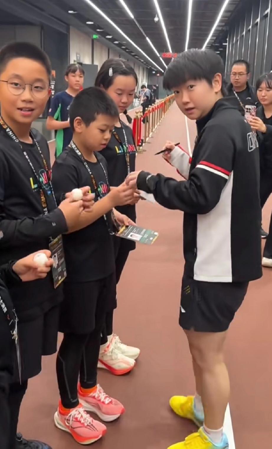 WTT北京大满贯暖心瞬间!孙颖莎赛场内外人气爆棚,成乒乓迷“团宠” 在2025年WTT中国大满贯赛事间隙,孙颖莎展现了超强的人气魅力。日本选手主动上前合影,小球迷们拿着乒乓球、球拍追着她要签名,现场处处是“莎迷”的身影。赛场上她是实力强劲的乒乓战将,赛场下她是亲和力满分的全民偶像,这样的莎莎谁能不爱呢!孙颖莎 团宠